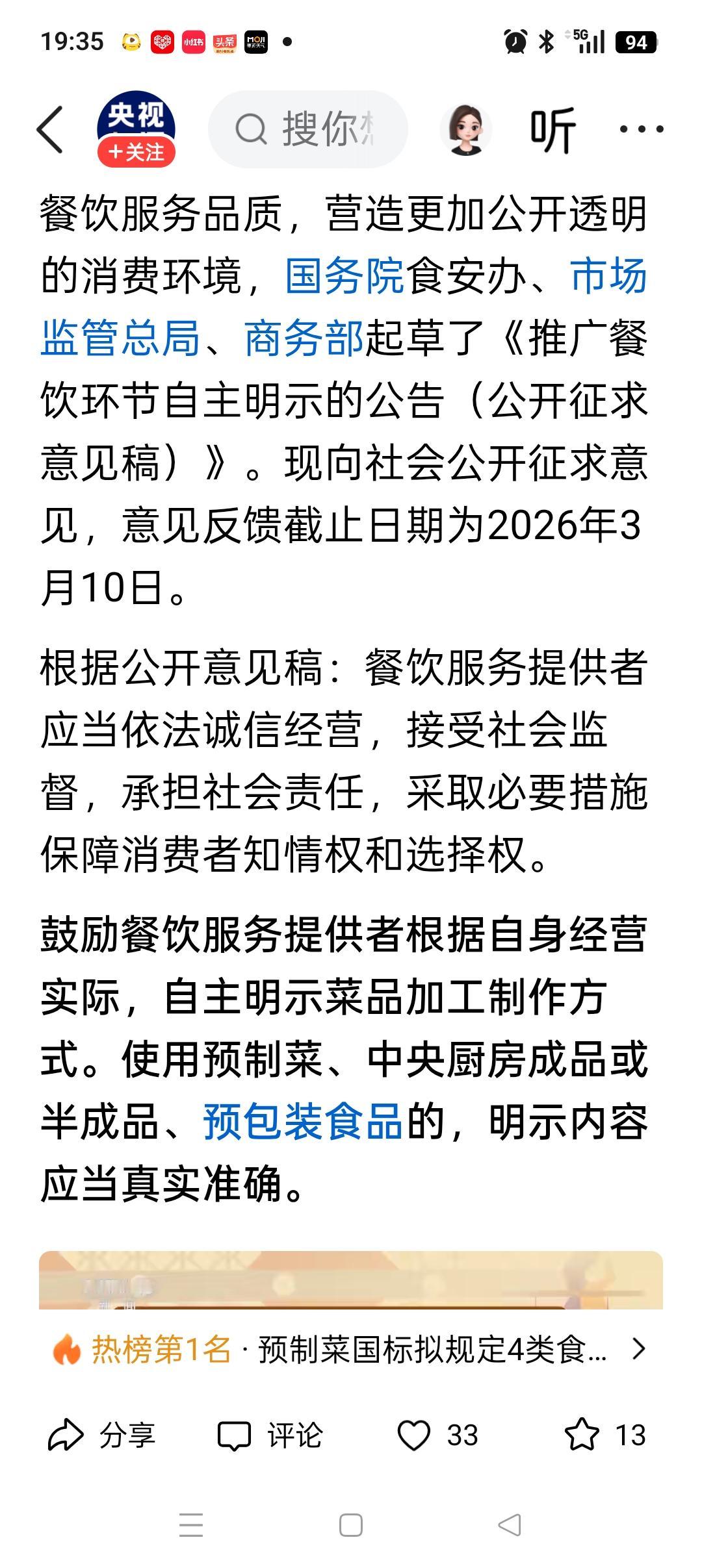 今天,罗永浩应该欣慰的笑了!虽然预制菜新国标明确规定了中央厨房制作的食品不属于预制菜,但是也强调了营养品质的重要性,且保质期不得超过1年。 之前罗永浩也提到了,如果餐厅使用的是预制菜制作,应当向消费者公开。这一次新国标条例里也特别提到:鼓励餐厅负责人明示菜品的加工方式,信息务必准确。 罗永浩用自己的亲生经历,让预制菜有了更高的标准,大家也吃的越来越放心。想必此时此刻的他应该是笑了,而且很欣慰[大笑][大笑]