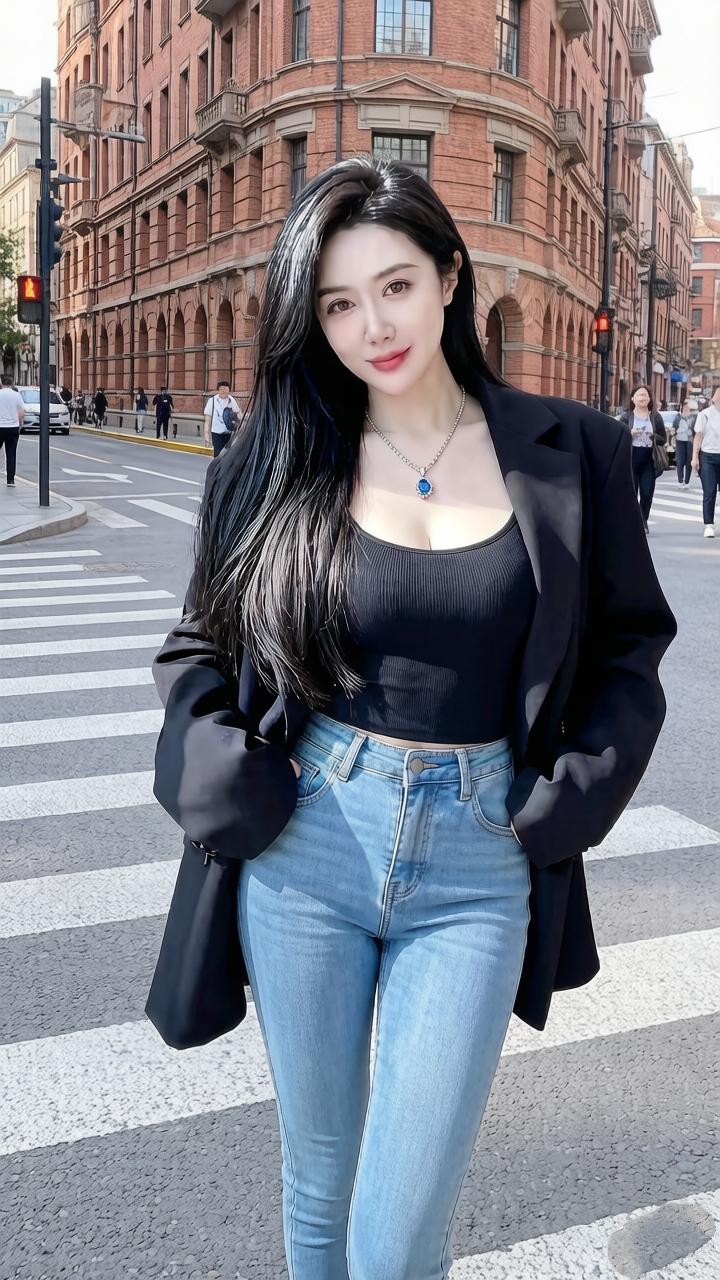 都市街拍,时尚穿搭,自信微笑,红砖背景,轻松自在。