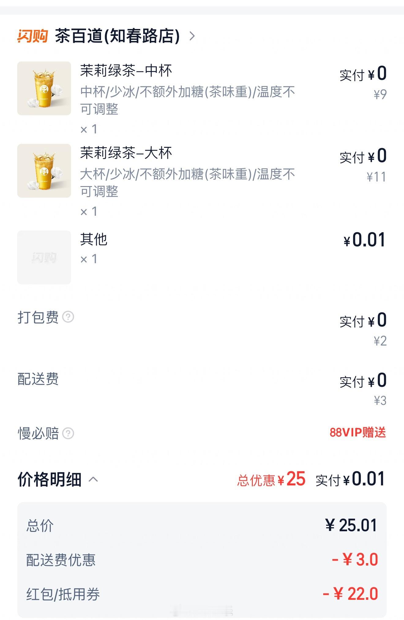 感谢淘宝闪购和千问让我晚上喝到了免费茶饮料,我们家附近奶茶店都卖空了,