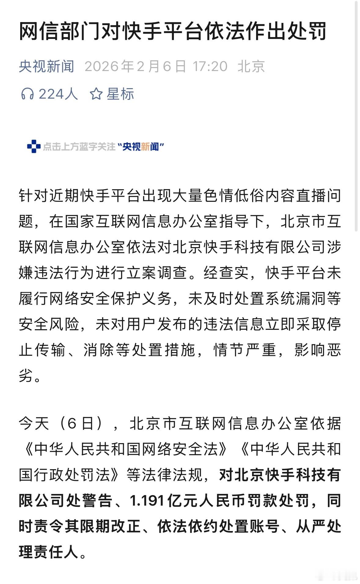快手这事是因为擦边吗?快手被罚1.191亿元人民币