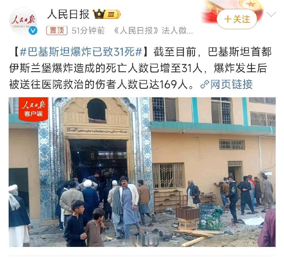 这是公开向大国挑战的节奏! 继上次巴基斯坦突然遭遇恐怖袭击后,2月6日,巴基斯坦首都伊斯兰堡一座清真寺再次遭遇了更为残忍的恐怖袭击: 寺内爆炸已造成31死169人伤…… 上次是某两国支持下拥有全新武装与大量美元的恐怖分子,而这次是恐怖分子进行的一次疯狂报复,更像是公开向大国挑战的节奏!