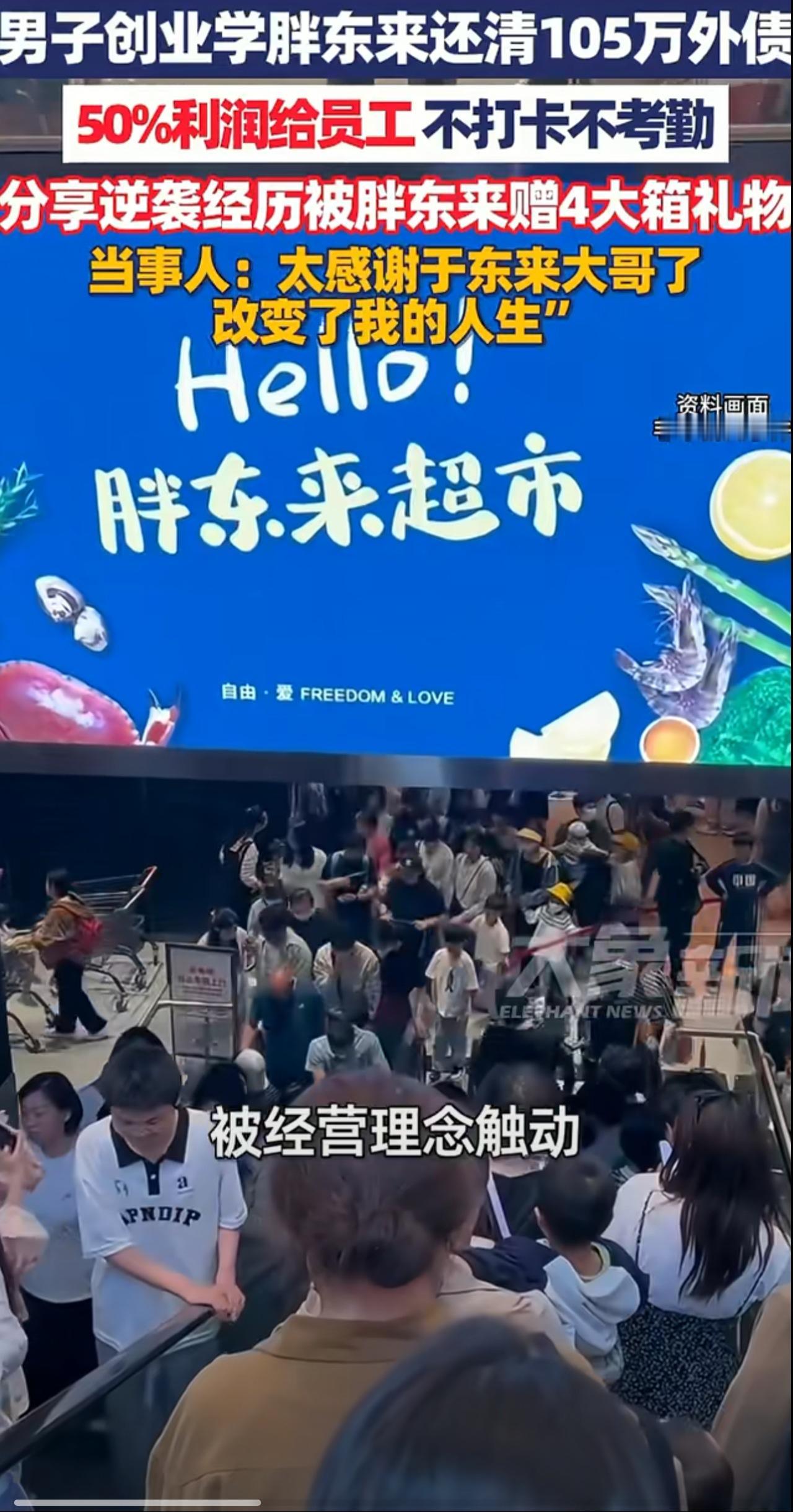 好老板一般都不会亏钱! 这不两极反转来了。 于先生表示:“自己创业干物流欠了105万的外债,两次坐在天台想要轻生,没有下定决心,偶然的机会,去逛胖东来超市,被他们的经营理念折服打动,然后我就照着学习。” 不打卡,不考勤,主要靠员工自觉,只要能完成工作,可以不来,员工积极性有了飞跃般的提高,公司利润涨的厉害,他很快还完了外债,并且发了点小财,随后他真诚的分享了自己的经历,鼓励千千万万个创业者,要改变传统抠门老板理念,让利与民,就是富贵自己。 2月5日河南郑州,男子创业学胖东来还清105万外债:50%利润给员工,分享逆袭经历被胖东来赠4大箱礼物!