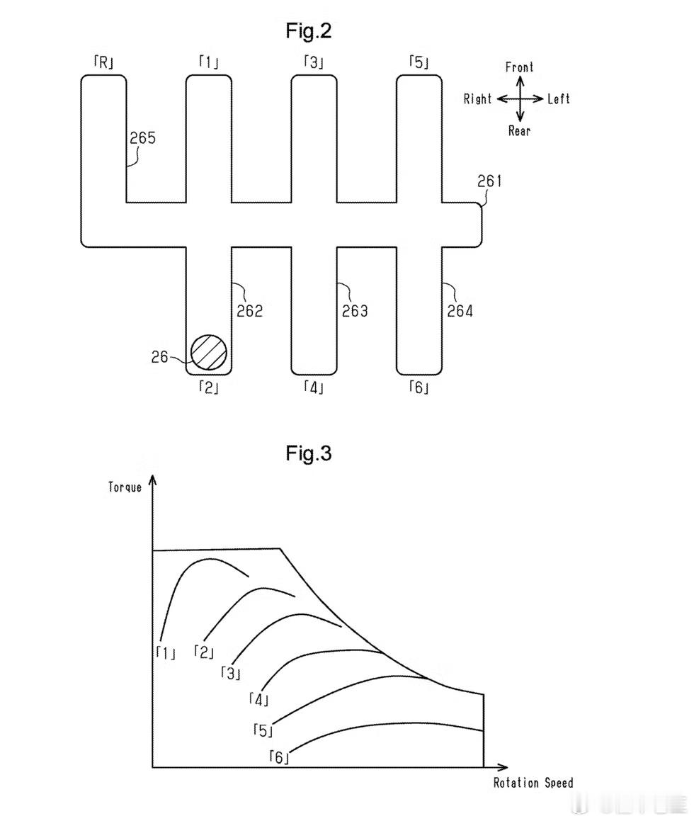 专利细节图显示,Fig.3 横轴:Rotation Speed,纵轴:Torque 这个曲线,是电机边界特性,低速恒扭矩,高速恒功率,这个之前我们分享过类似的,下面几条曲线,是专利解释的“档位” 本体,丰田对此的解释为——用“驾驶者可理解的挡位语言”,去控制一个连续、无限可变的电机系统。