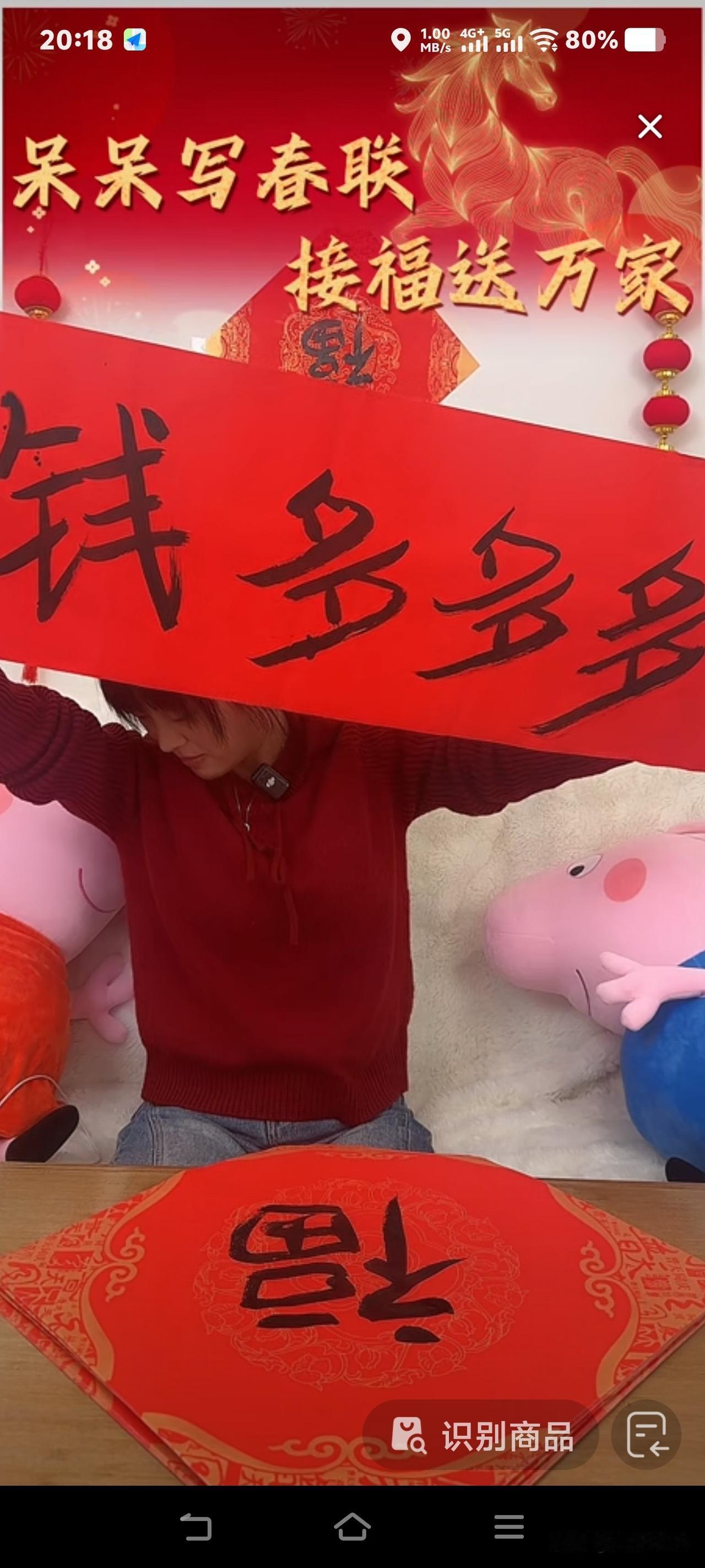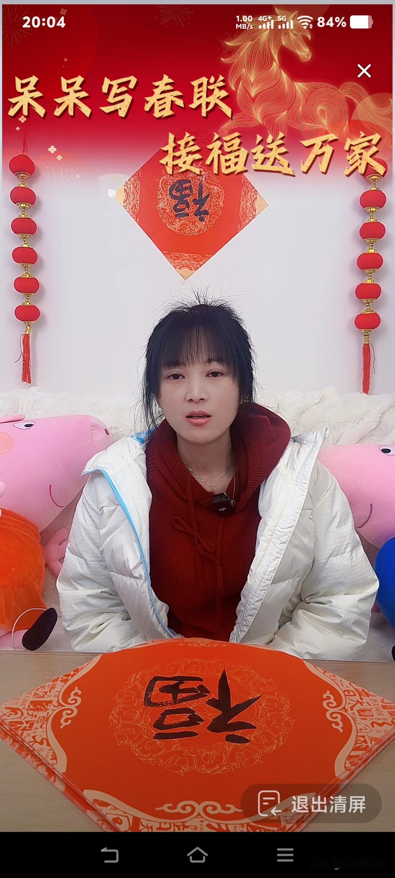 呆呆开播了手写春联只有三千份,大家快去抢!开播最高9万人! [福]8点呆呆准时开播,最高人气九万+,开播15分钟人气开始下将,24分钟左右直播间人气逐步稳定在五万到六万左右。今晚的直播和上次直播对比人气有点下降,下降的有点厉害都是一万一万的掉人,半小时左右直播间人气在五万+,今晚呆呆直播还是没有打开礼物打赏,呆呆在直播间就是聊天,写毛笔字,直播间没有什么氛围感可能留不住人吧!你们说呢!