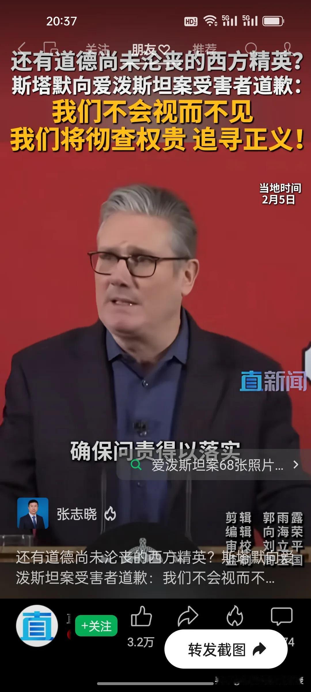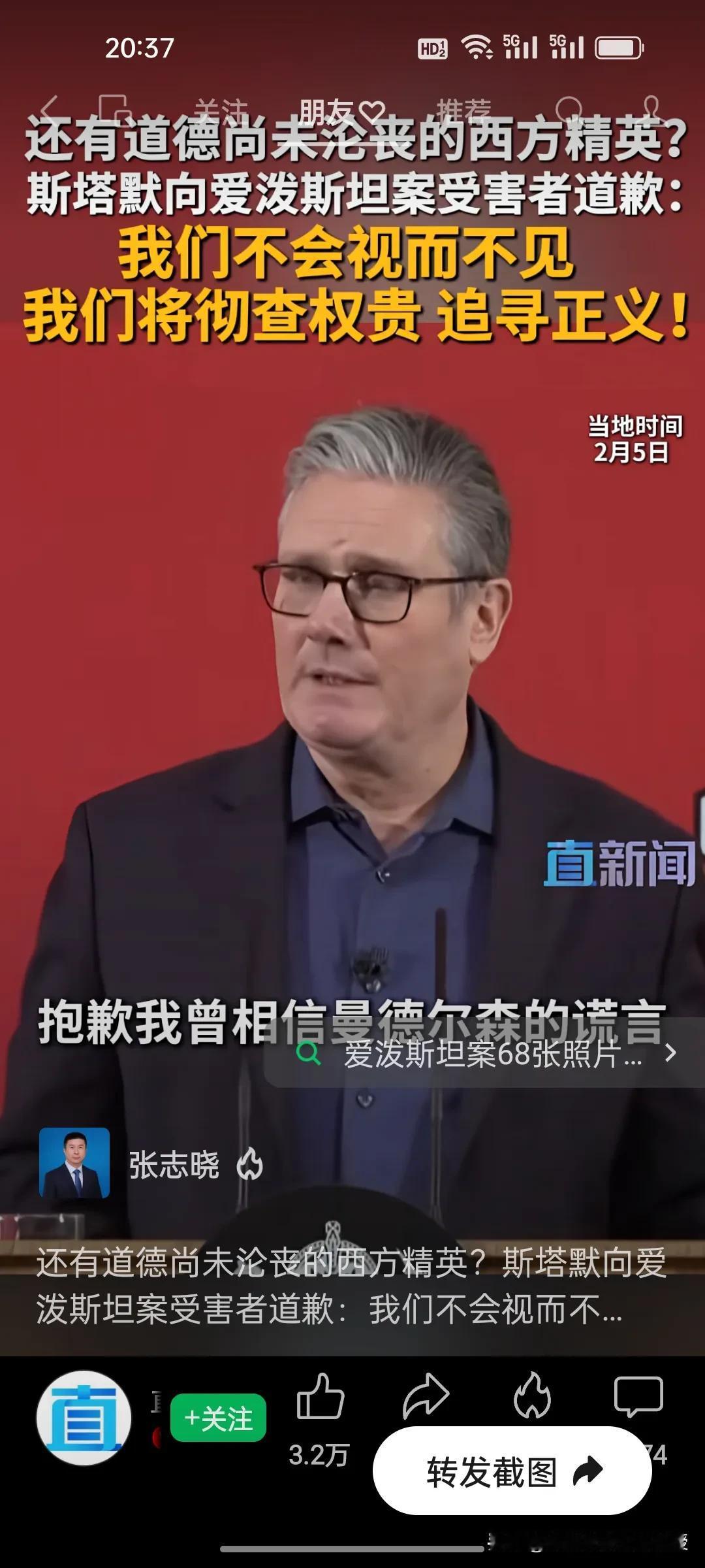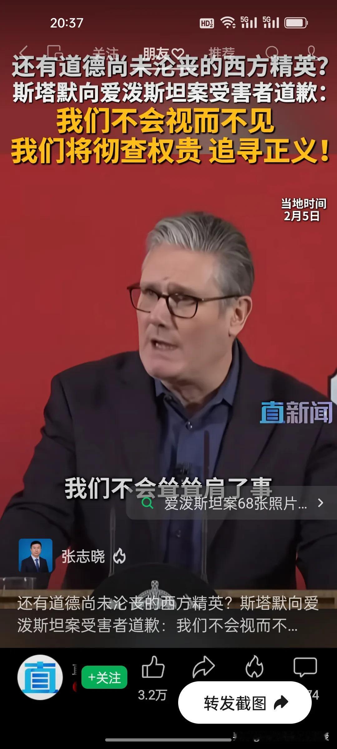 今天,英国首相斯塔默坚定地站出来了,向爱泼斯坦案受害者道歉! 爱泼斯坦案的阴霾迟迟未散,终于有西方政要主动站出来直面真相!英国首相斯塔默今天公开向受害者致歉,直言“我们不会视而不见,将彻查涉案权贵,坚定追寻正义”,更坦言曾轻信曼德尔森的谎言,更承诺彻查权贵、公布审查文件,绝不让司法程序被阻碍。 在一众权贵缄口不言、试图掩盖真相的当下,斯塔默的表态格外难得。他没有回避阶层弊病,而是以实际承诺回应受害者的诉求,守住了为政者的底线与良知。 这份迟来的正义承诺,能否真正撬动西方精英的遮羞布?很多网友说,斯塔默访华后跟加拿大总理卡尼一样,都带着一身正气,引领着欧洲正在觉醒!