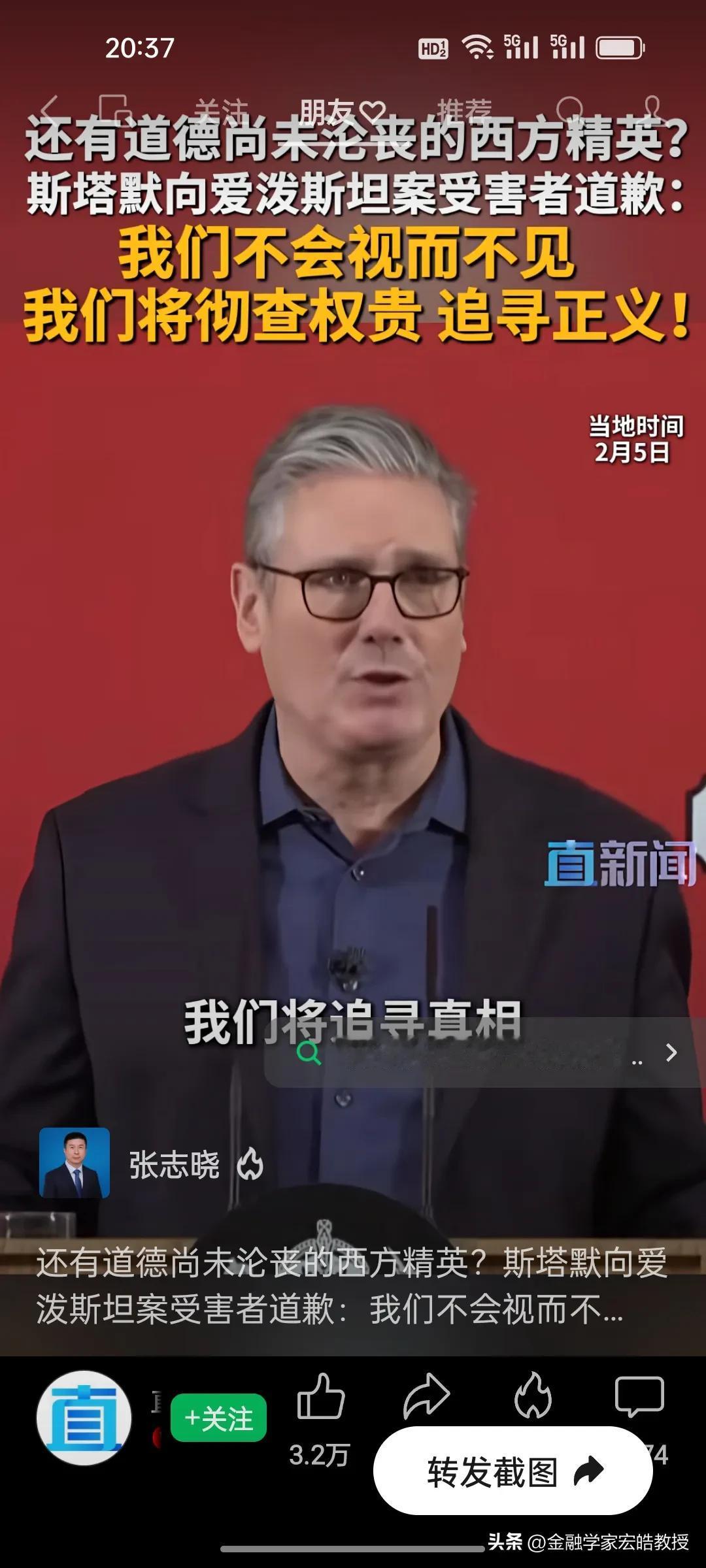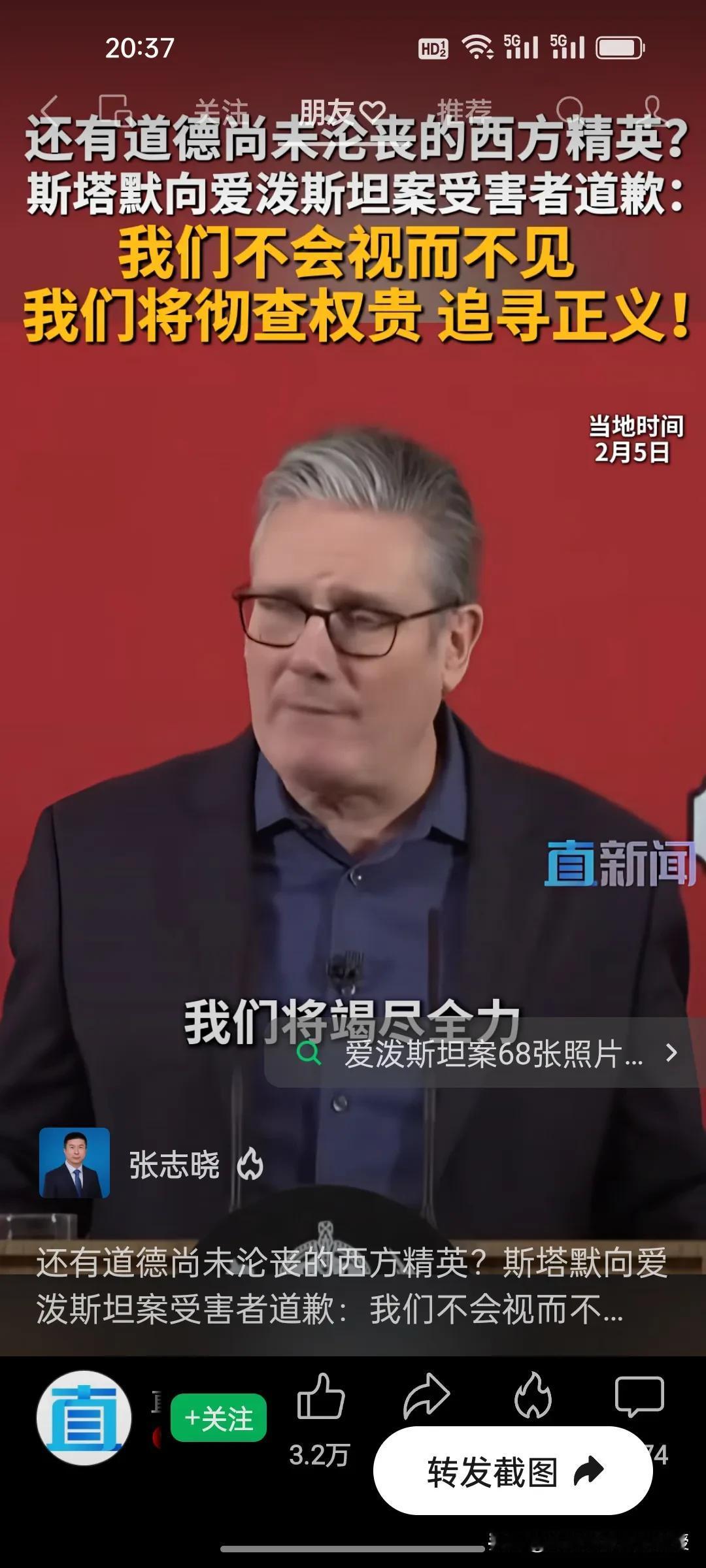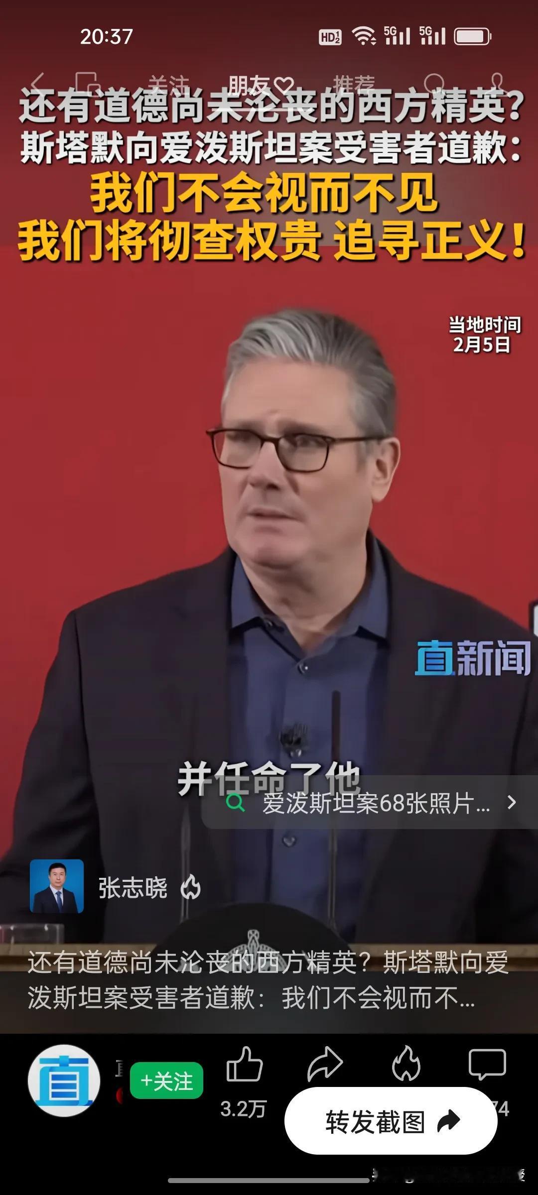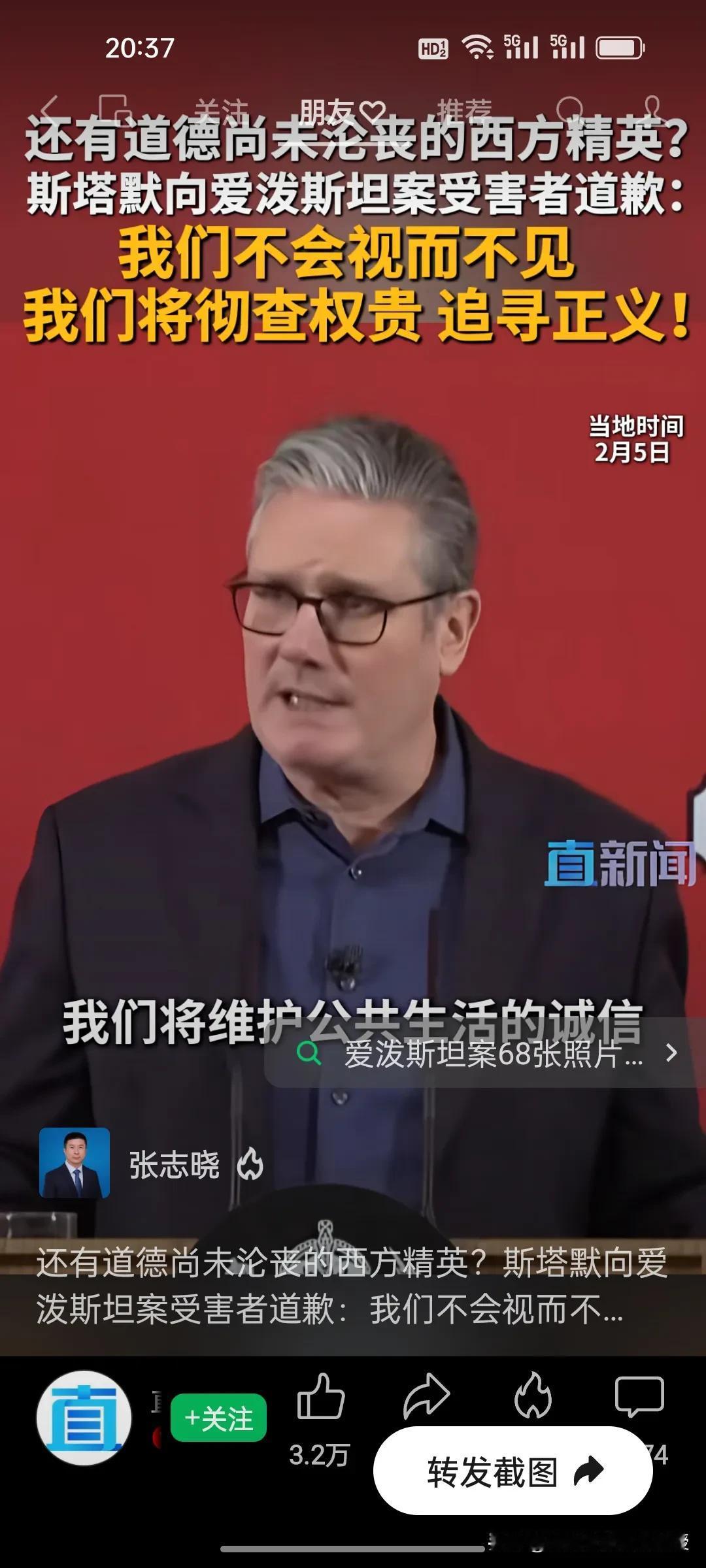 今天,英国首相斯塔默坚定地站出来了,向爱泼斯坦案受害者道歉! 爱泼斯坦案的阴霾迟迟未散,终于有西方政要主动站出来直面真相!英国首相斯塔默今天公开向受害者致歉,直言“我们不会视而不见,将彻查涉案权贵,坚定追寻正义”,更坦言曾轻信曼德尔森的谎言,更承诺彻查权贵、公布审查文件,绝不让司法程序被阻碍。 在一众权贵缄口不言、试图掩盖真相的当下,斯塔默的表态格外难得。他没有回避阶层弊病,而是以实际承诺回应受害者的诉求,守住了为政者的底线与良知。 这份迟来的正义承诺,能否真正撬动西方精英的遮羞布?很多网友说,斯塔默访华后跟加拿大总理卡尼一样,都带着一身正气,引领着欧洲正在觉醒!