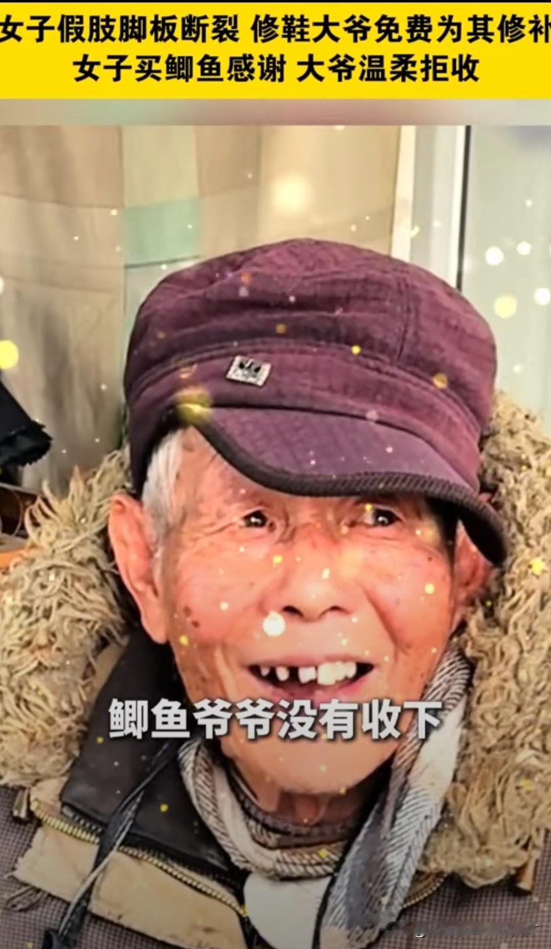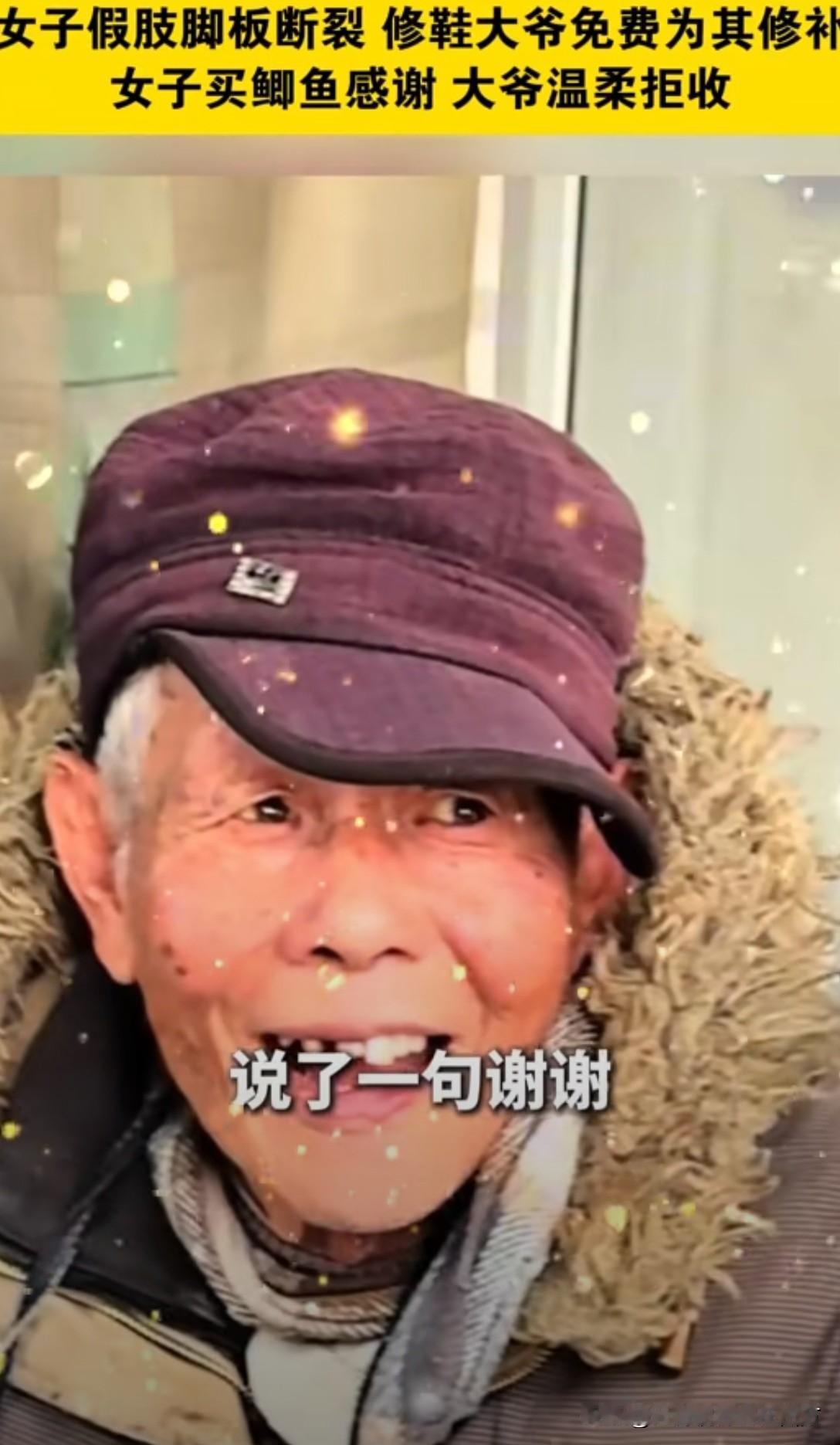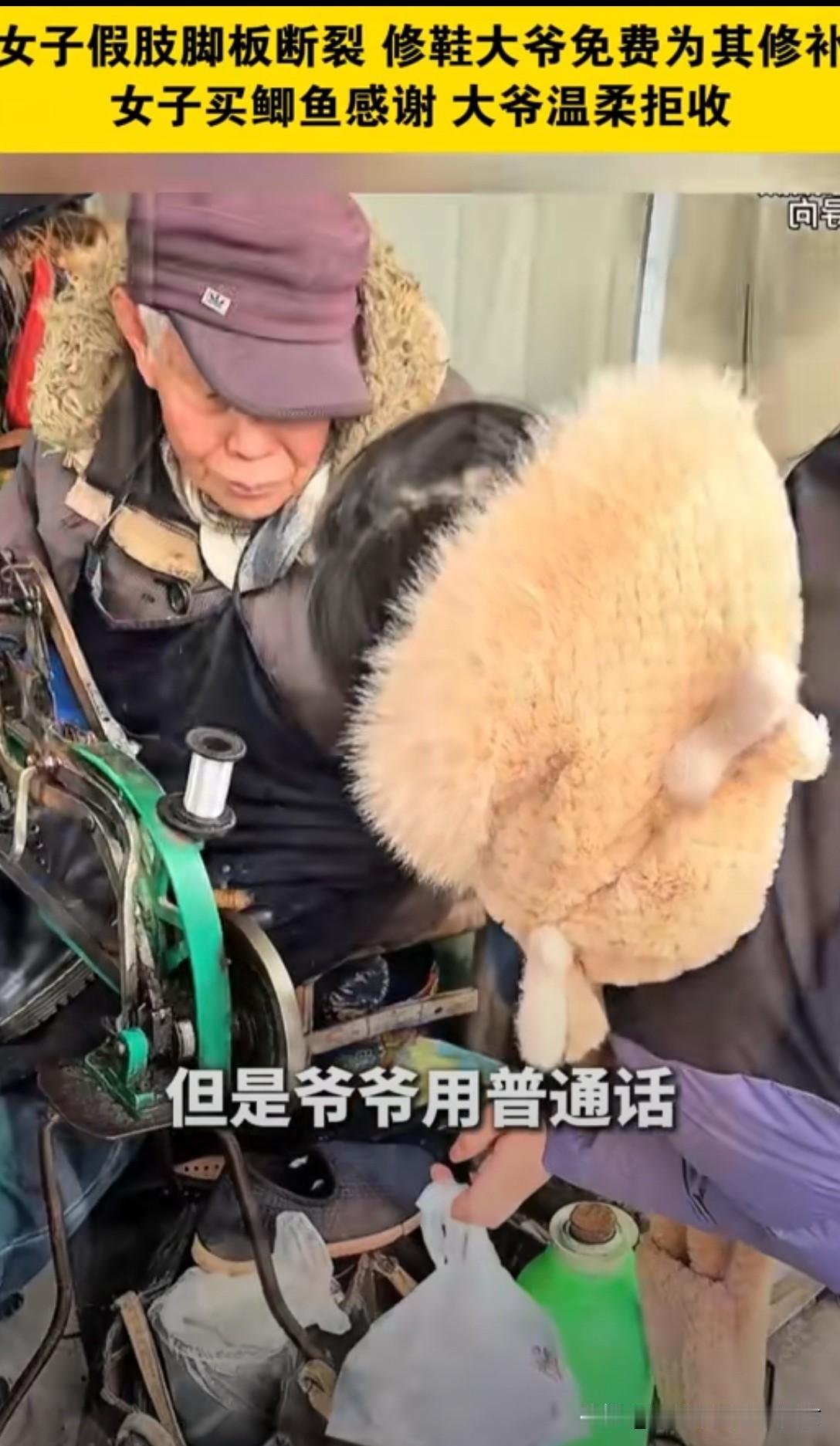 暖心:一瓶修鞋胶水抵价一万二千!!! 无锡一女子假肢断裂,换新需一万二,拮据之下求助修鞋大爷。大爷从未修过假肢,但见女子窘迫模样,心软应下“我试试”。 他凭着手艺细心涂胶、打磨、加固,愣是将假肢修得结实耐用。女子欣喜问价,大爷却分文不收,直言她更不容易,能帮一把是一把。女子买鱼致谢,也被大爷婉拒。 几毛钱的修鞋胶水,替女子省下上万开销,更粘住了最纯粹的人间善意。大爷修的是假肢,更是生活的支点,这份市井里的温暖,在浮躁时光里格外动人。