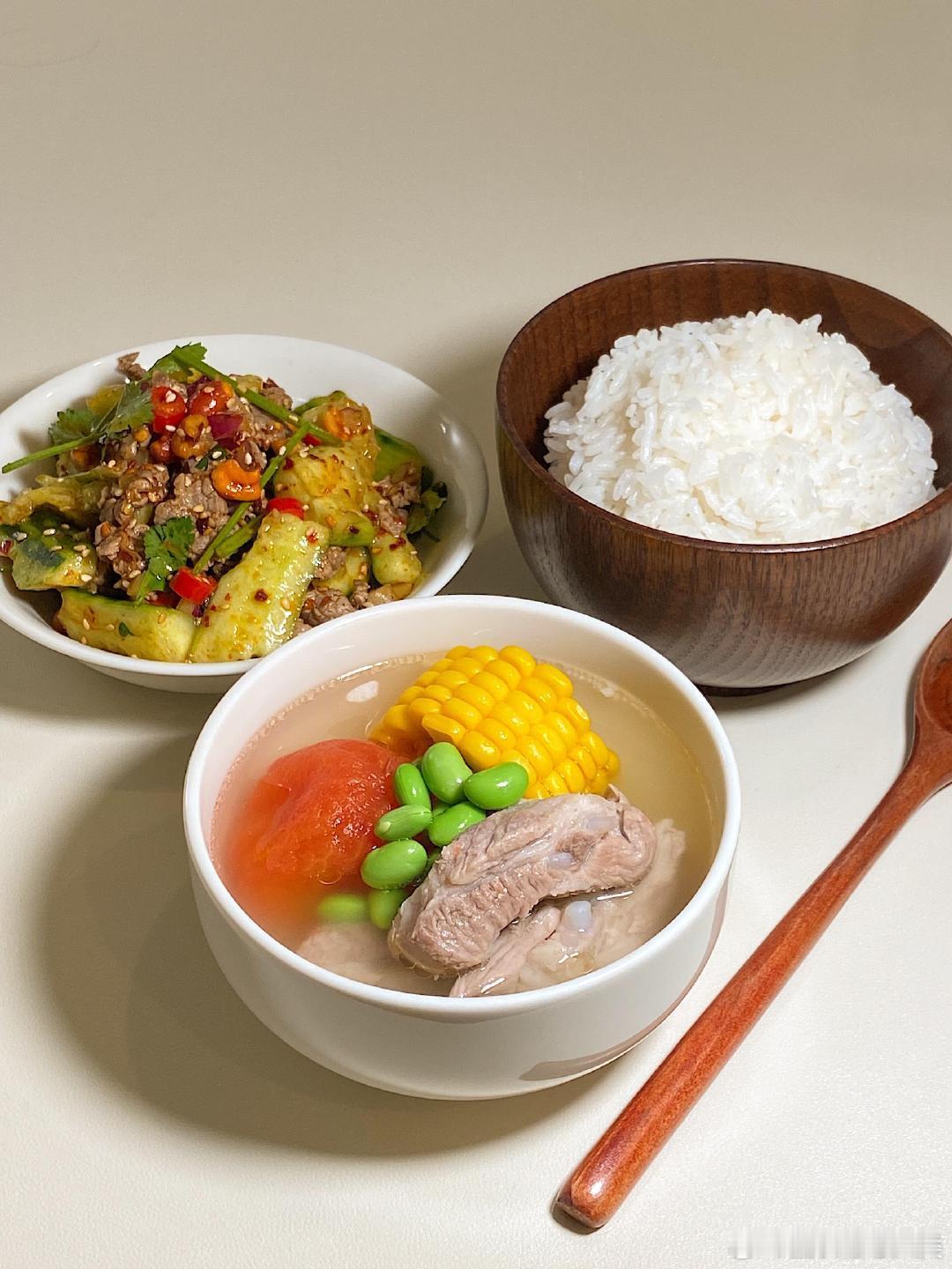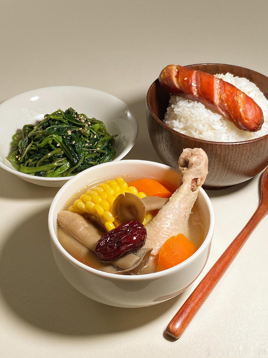 在公司里吃午餐我是认真的,董师傅炖个排骨还放了枣,怪会做饭的。今个中午的伙食