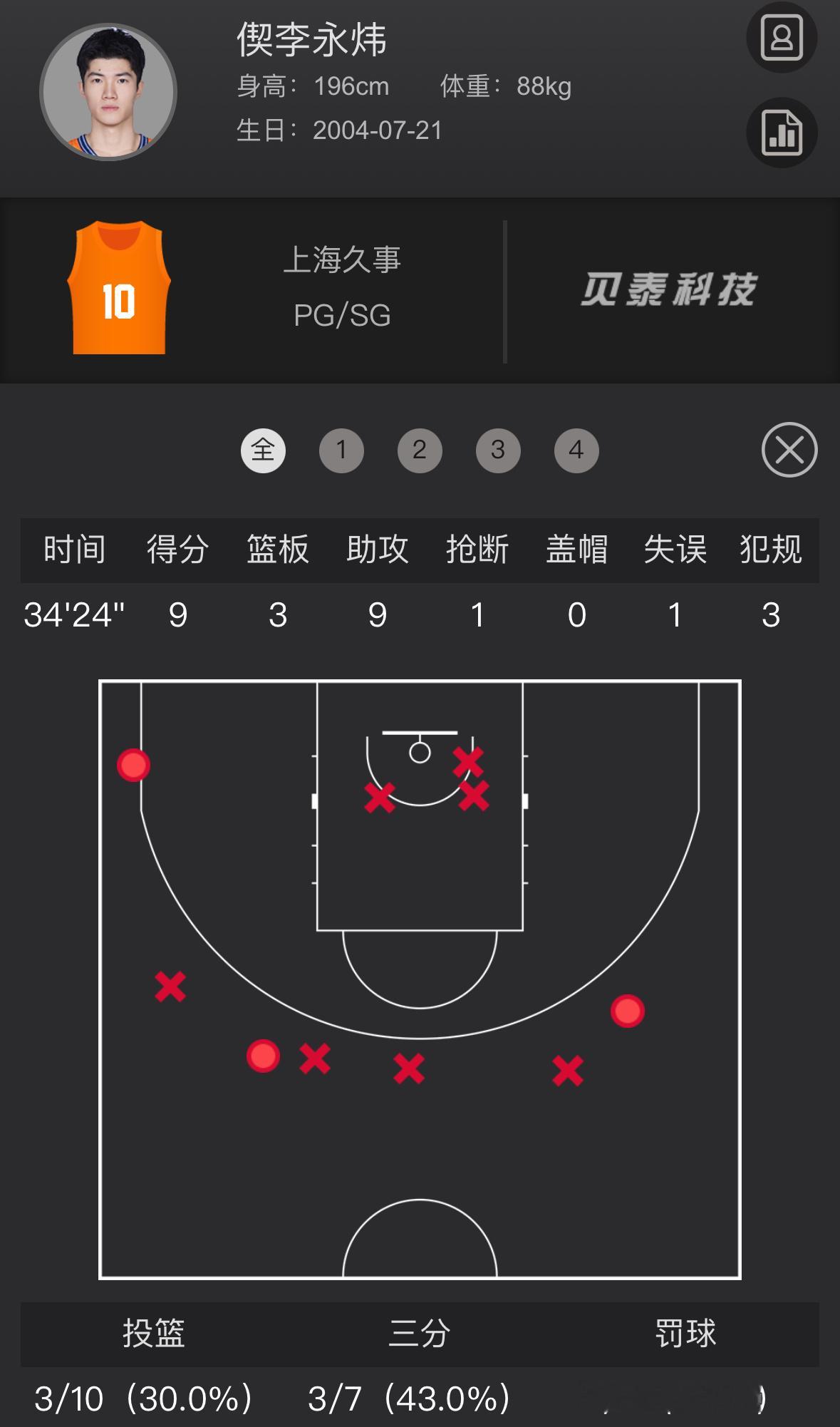 偰李永炜最近5场比赛有4场传出至少8助攻,唯一没到的那场他拿了26分上海男篮vs广东男篮CBA俱乐部杯
