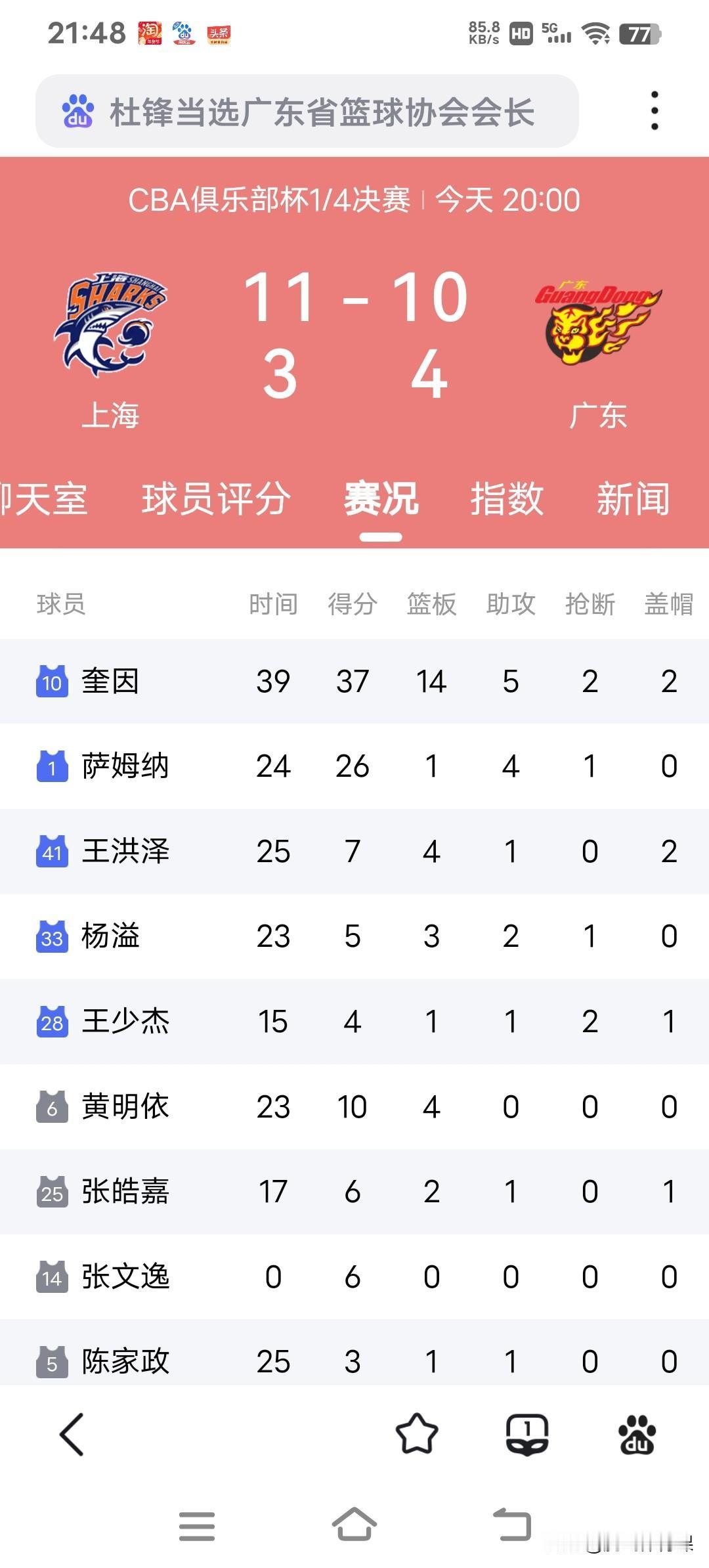 杜锋雪藏一人下赛季或离开广东。 刚刚结束CBA俱乐部杯赛八强淘汰赛,广东再次104:113不敌上海无缘四强,本场双方均有主力球员缺席,上海队缺少李弘权,张镇麟,而广东队缺少徐杰,胡明轩,焦泊乔,另外崔永熙,麦考尔依然继续养伤,萨林杰又不能打,按理说三年级的张文逸完全可以出任在首发名单中,可杜锋却几乎让张文逸坐了一整场冷板凳,比赛仅剩46秒的垃圾时间,杜锋才换上张文逸。 CBA常规赛前10轮,在胡明轩受伤无法出战情况下,张文逸还一直担任首发得分后卫,可胡明轩复出后,张文逸却很难再次回到比赛大名单,杜锋宁愿安排陈家政,李文昊更多的出场时间,也不愿意给张文逸一点点出场机会,杜锋对于张文逸的雪藏令人费解,而张文逸的合同也将本赛季结束后正式到期,可见,张文逸下赛季离开广东队的概率非常大。
