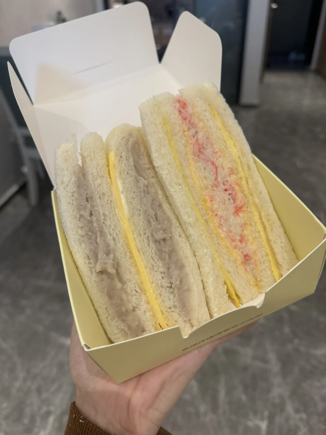 注意!!是咸口!咸口咸口 火腿第一蟹柳第二 甜口的就中规中矩! 那个芝士酱也不腻~三明治体软软的