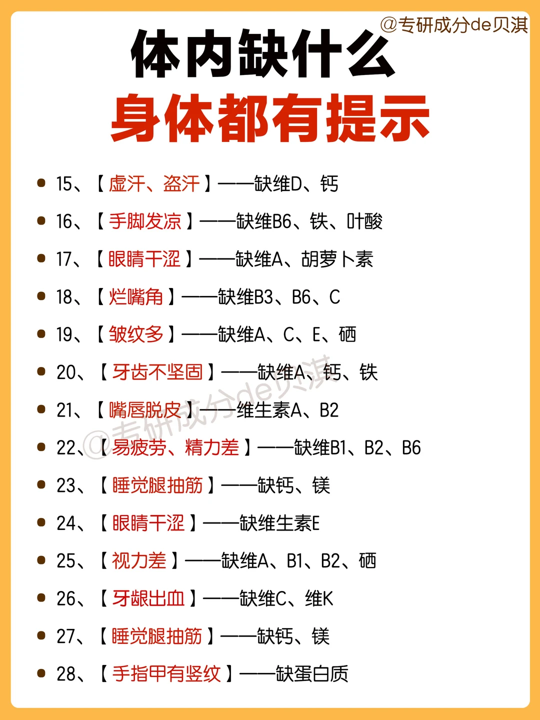你身体都中了哪些提示? 建议转给老公和朋友一起看! 维生素一般无法由身体以及生产,需要通过饮食摄取,主页有每月应季菜持续更新,应季菜富含丰富的维生素和矿物质,欢迎移步查看。