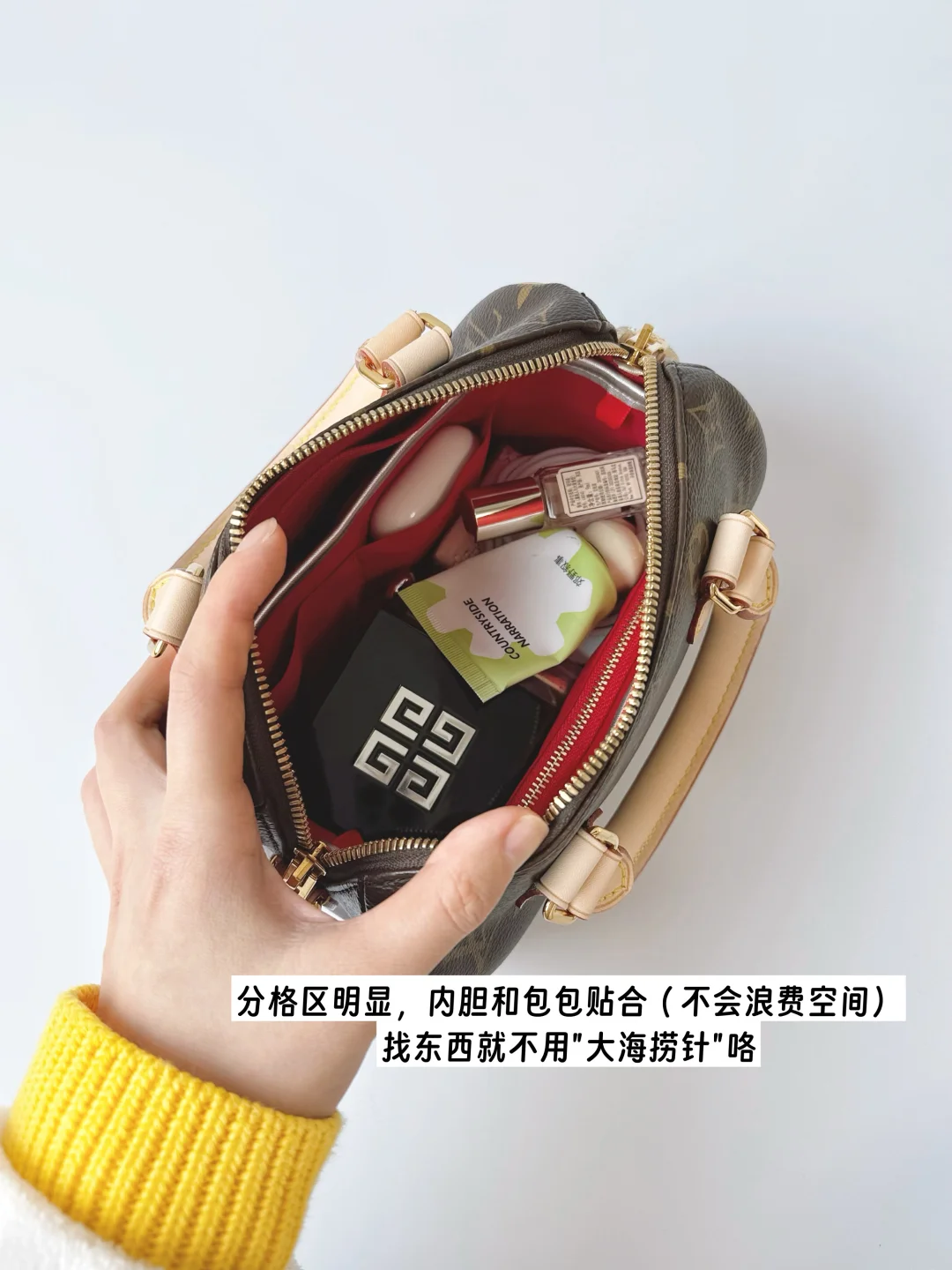 把包包里的零零碎碎归置得整整齐齐