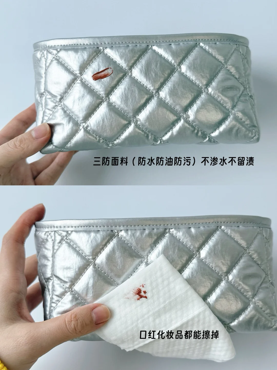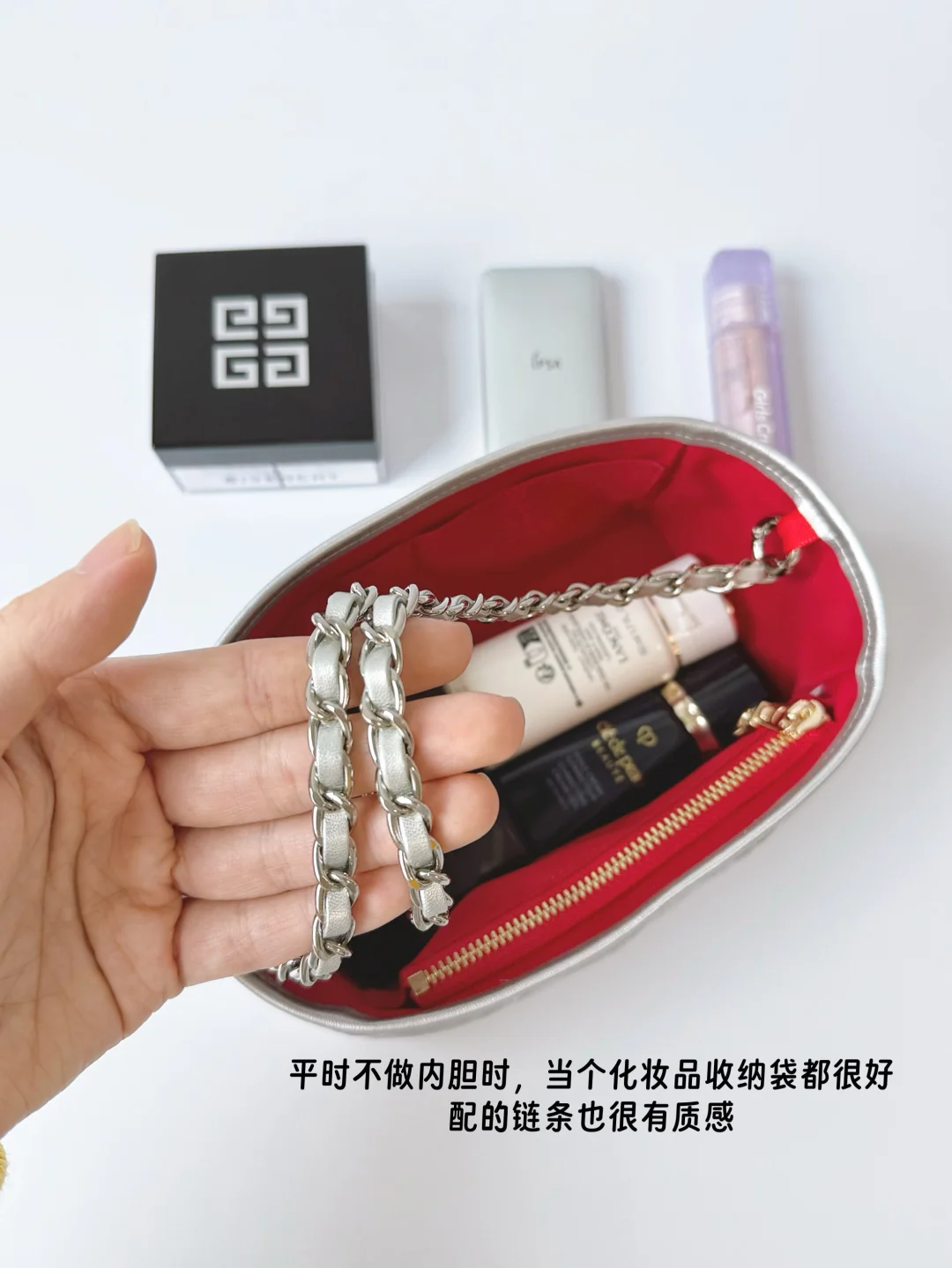 而且可一包多用,能做内胆包也可以做化妆包,配了小链条好好康~