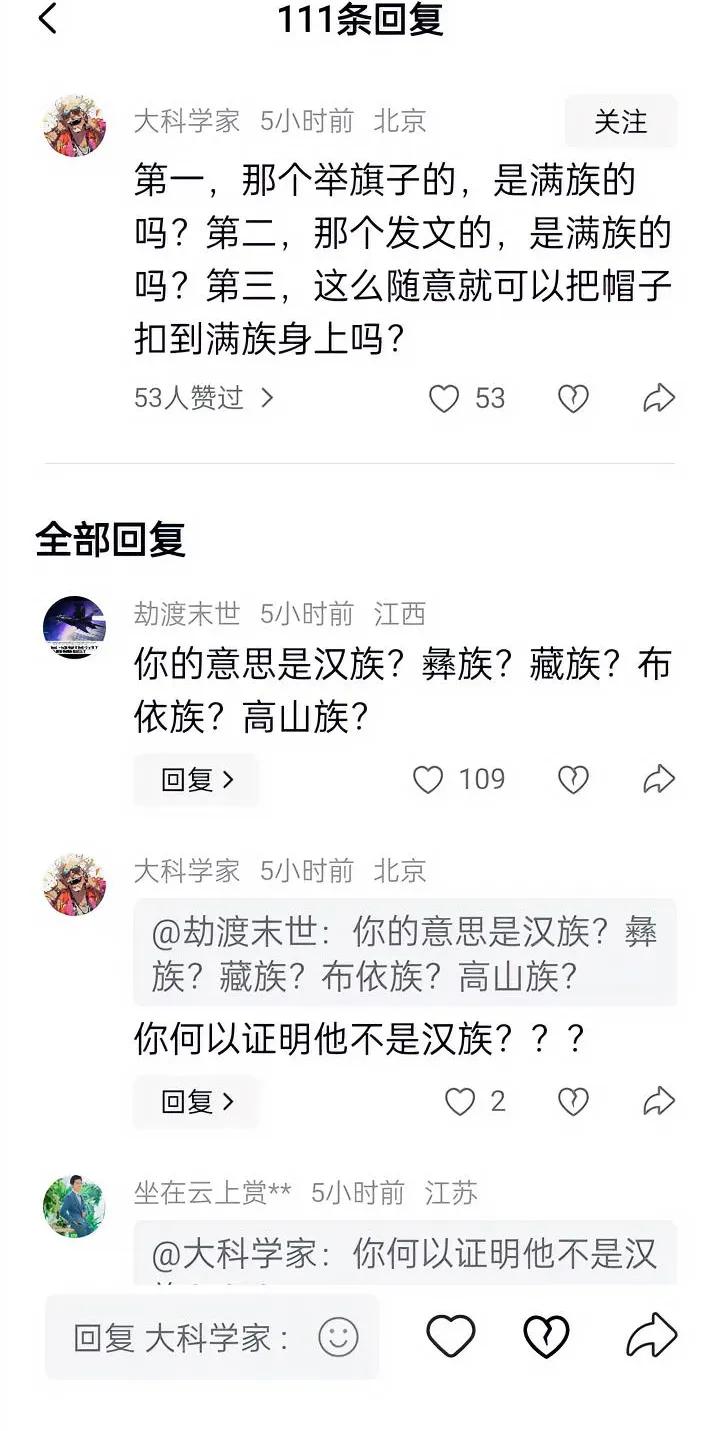 谁给的胆子?“北京是八旗的吗”纯属公开挑事! 北京是全体中国人民的北京,敢问说这话的人,哪来的底气狂?哪来的胆子挑拨民族团结? 民族大义容不得半分亵渎,团结底线绝不容许触碰!跳梁小丑的拙劣言论,不过是自取其辱,也休想撼动亿万国人的民族共识!
