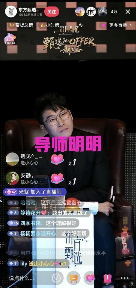 东方甄选甄选主播甄透明! 久违的四万人,原来大家都在背后默默地支持着东方甄选呀,平时要么在直播间,要么在APP买了东西就走了,这一招聘新主播,大家都站出来了,都想更多优秀的年轻人走进自己信赖的东方甄选。 东方甄选现场直播新主播面试,现场既严肃又温暖。考官不只是俞老师,陈老师,YOYO,明明,七七,还有四万多在线的消费者们,每一位考生,评论区都会有一个评价,弹幕快得都看不过来。 俞老师仿佛永远都会在准备中创造奇迹。他把员工当自己的熊孩子,把消费者当做自己的老师。 百年老店—《东方甄选》不急慢慢走,才会走得更稳更久!