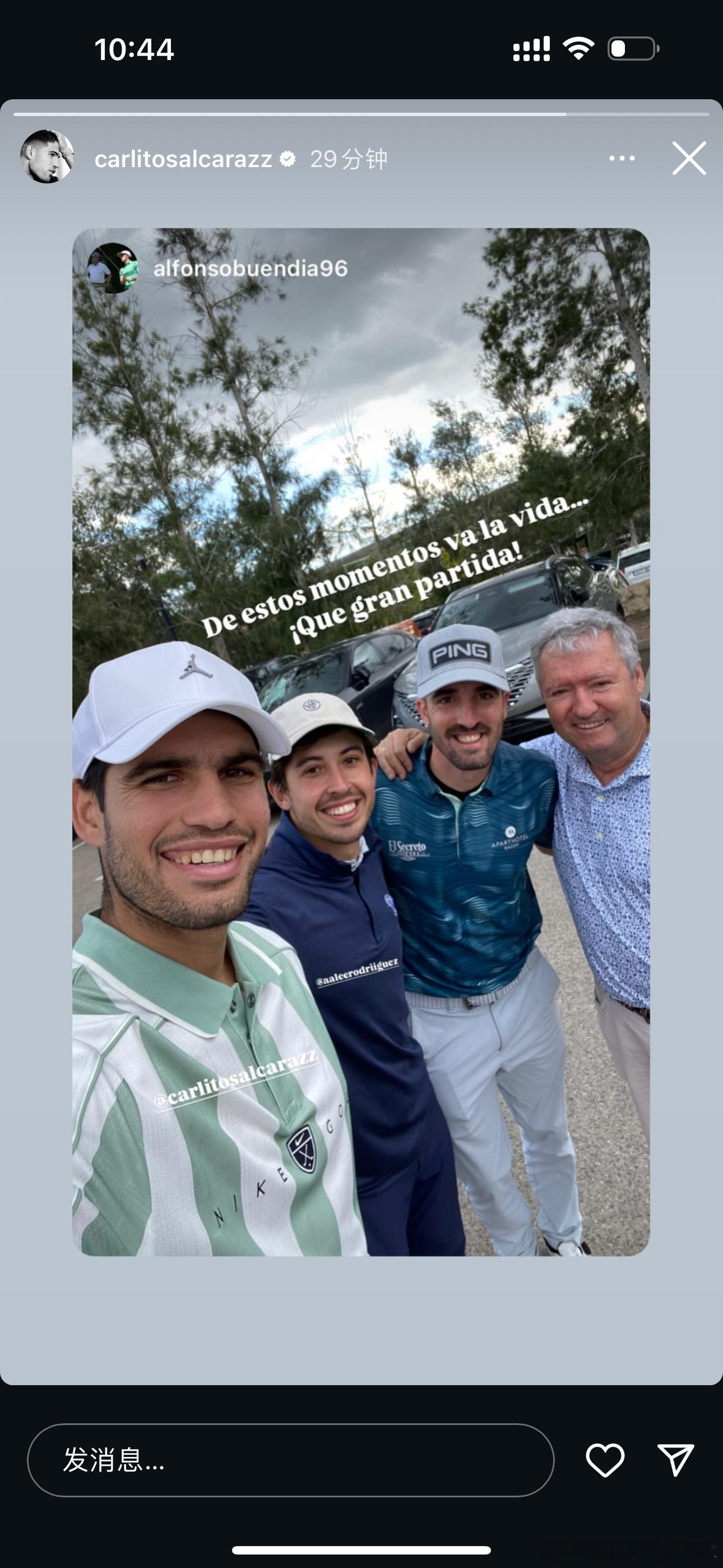 阿尔卡拉斯又去打高尔夫🏌️了;而莱巴金娜例行公事感谢了赞助商