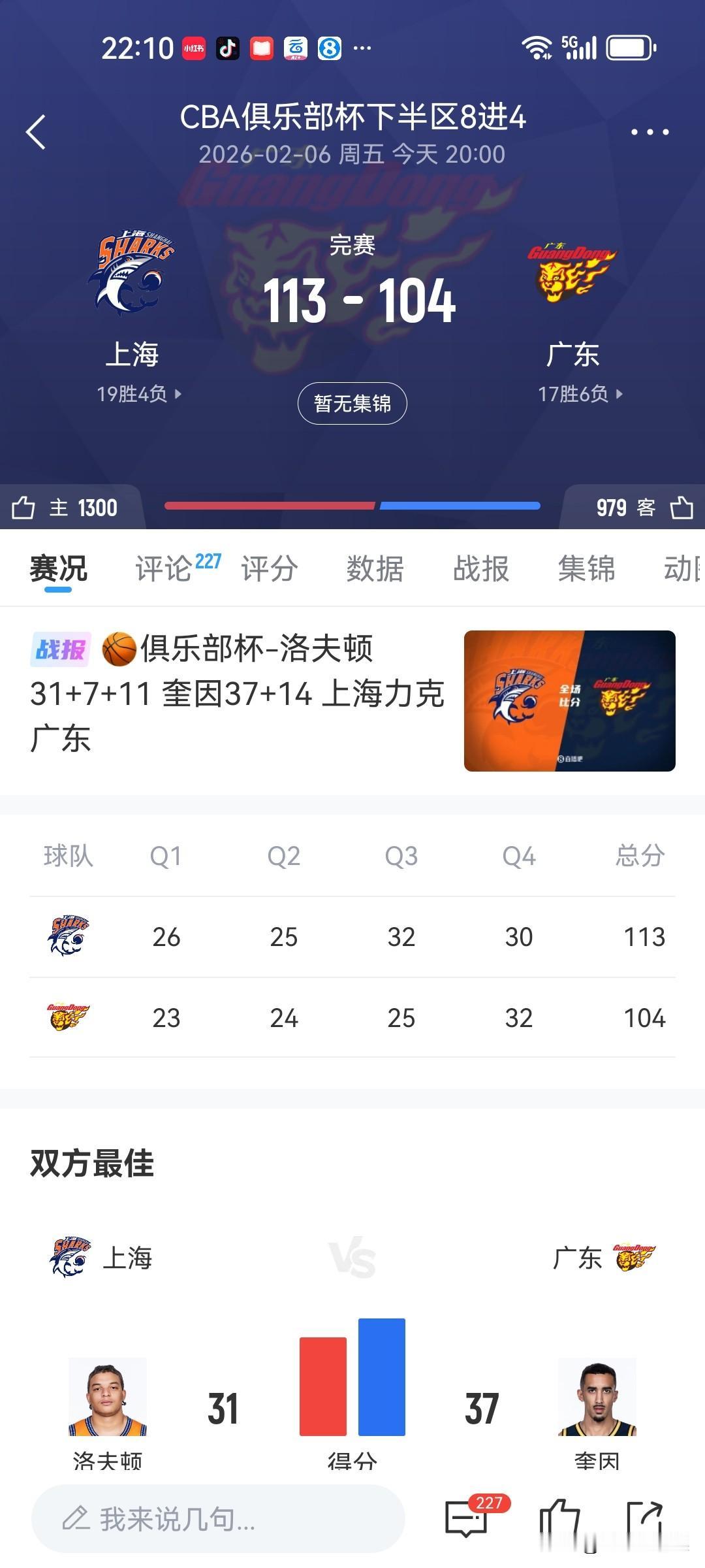 CBA篮球联赛常规赛告一段落了,俱乐部杯比赛开始了。上半区8进4的一场比赛,由上海久事VS广东东阳光。 前不久,两队刚在常规赛23轮比拼了一场,最终缺兵少将阵容不整的广东队主场十分负于上海队。 今晚,两队在CBA俱乐部杯比赛上半区8进4再次相遇。两队都有核心球员因去国家集训队而缺席,但上海队的纸面实力要强于广东队,且上海队主场作战。比赛开始,第一节前半段,广东队先发夺人,11一2领先,但稳住后的上海队很快追上并反超比分,单节26一23领先。此节再战,两队互有攻守,比分差别不大。半场结束时上海以4分优势领先。 下半场比赛,上海队逐渐的占据了场上的主动权,单节32一25胜出,分差达到了11分,第四节广东队依然难以迫近比分,虽单节以32一30胜出,仍以9分差距再次败于上海队。广东东阳光男篮 上海久事篮球队 广东东阳光赛程 久事篮球俱乐部
