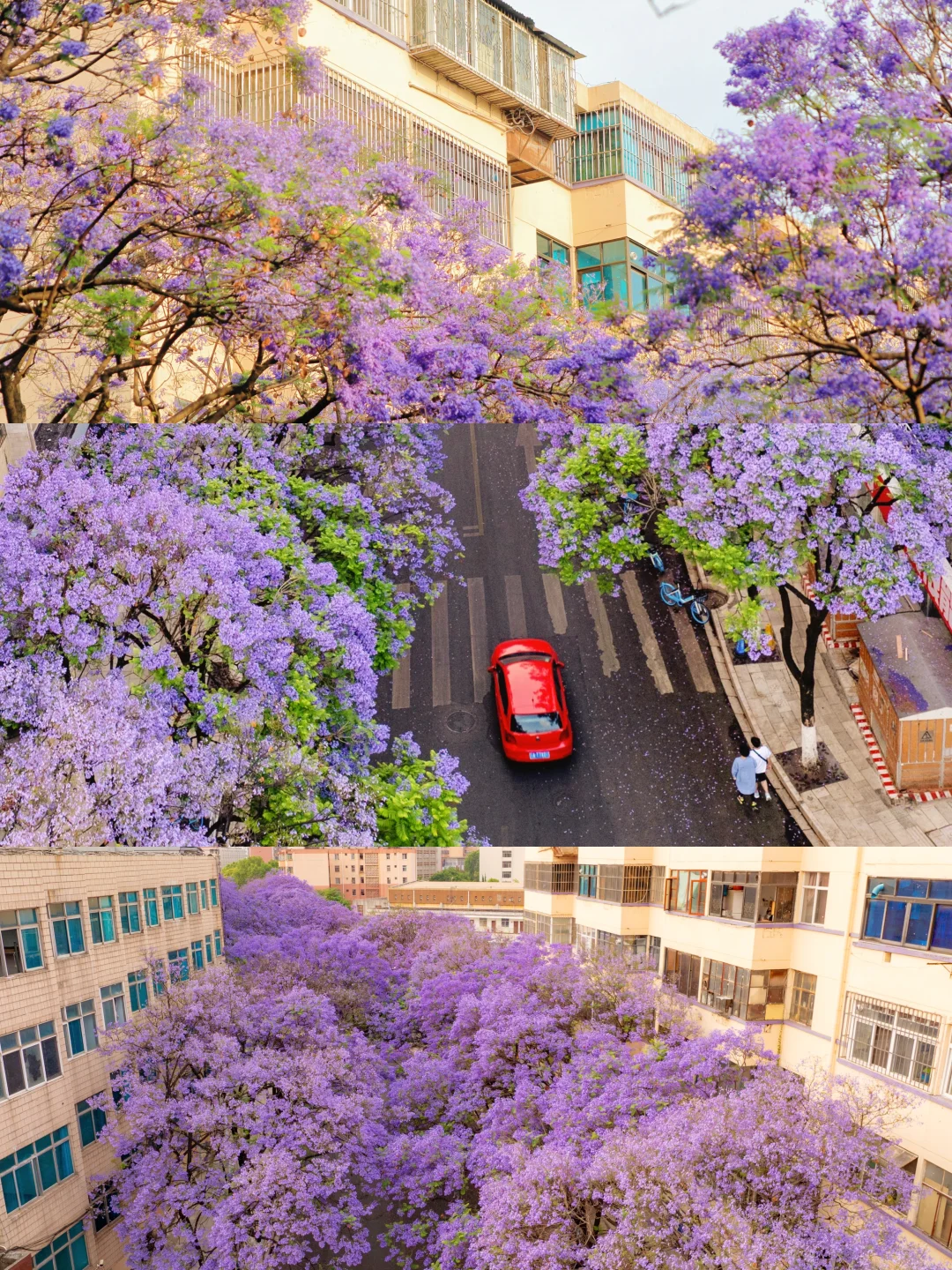 被满屏的紫色浪漫暴击了!四五月蓝花楹盛开的昆明,浪漫被紫色侵袭,这是我心中,昆明zui美的季节💜 🕐花期4月中-5月 主要拍摄点: 📍教场中路 📍盘龙江 教场中路建议早上9点前就拍完出来,否则旺季人肯定会特别特别多~ 航拍视角能拍出城市被花朵入侵的感觉~ 📷 拍摄于2024年5月1号,日期仅供参考~ 昆明的蓝花楹太浪漫了,已经开始期待春天了!!