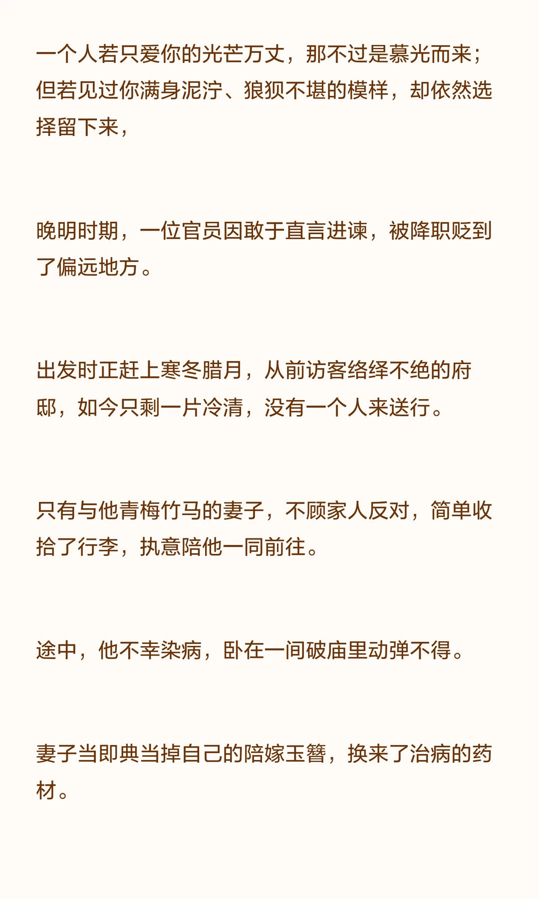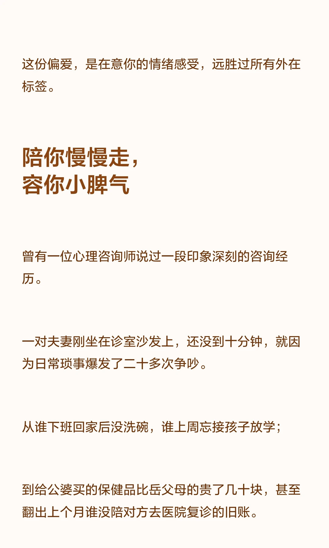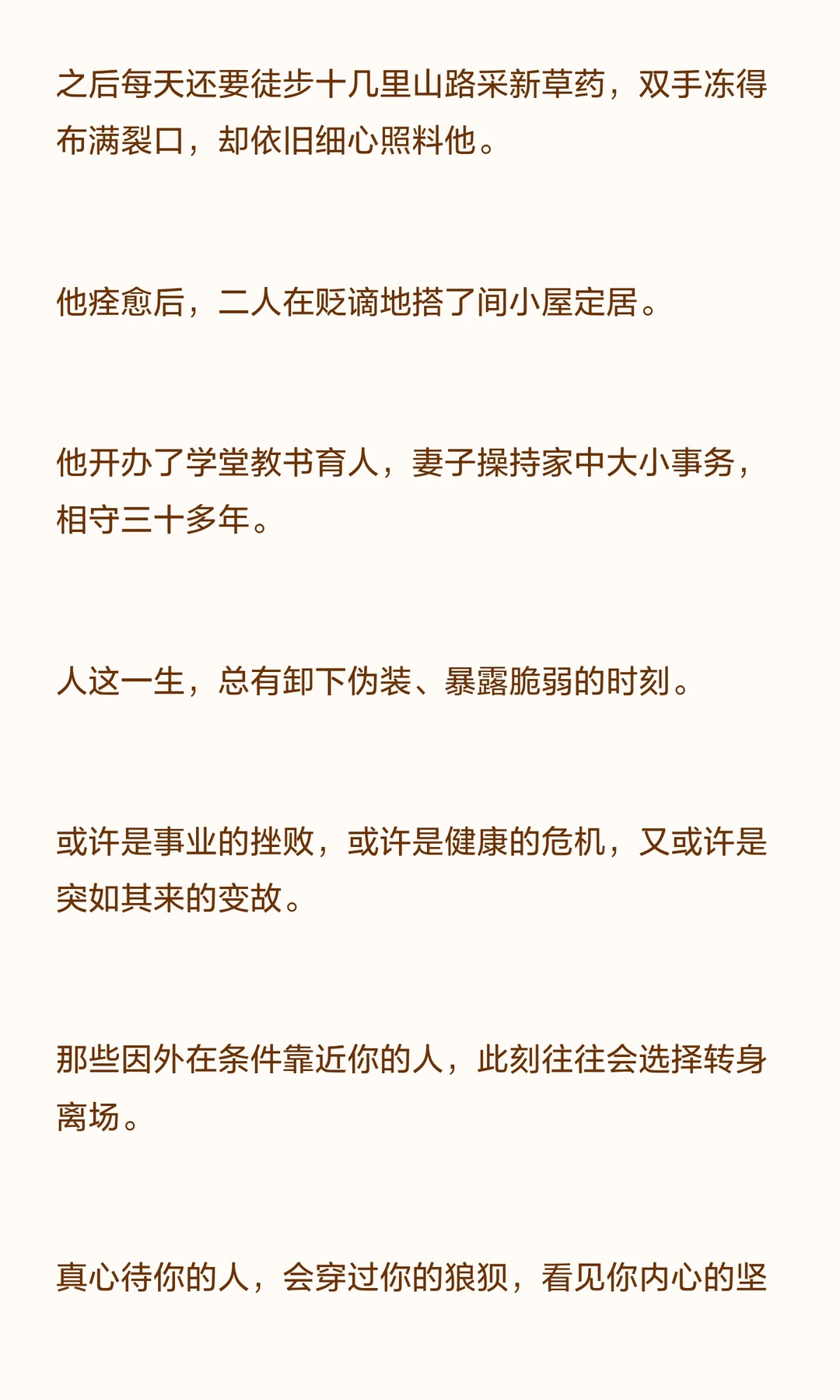 感情中,真正爱你的人,会关注你的内心,而非外在条件。 他们会在你最狼狈时依然陪伴,理解你的感受,接纳你的不完美。 珍惜那些在你脆弱时伸出援手,陪你走过风雨的人,用真心回报他们的偏爱,让平淡生活充满温暖。