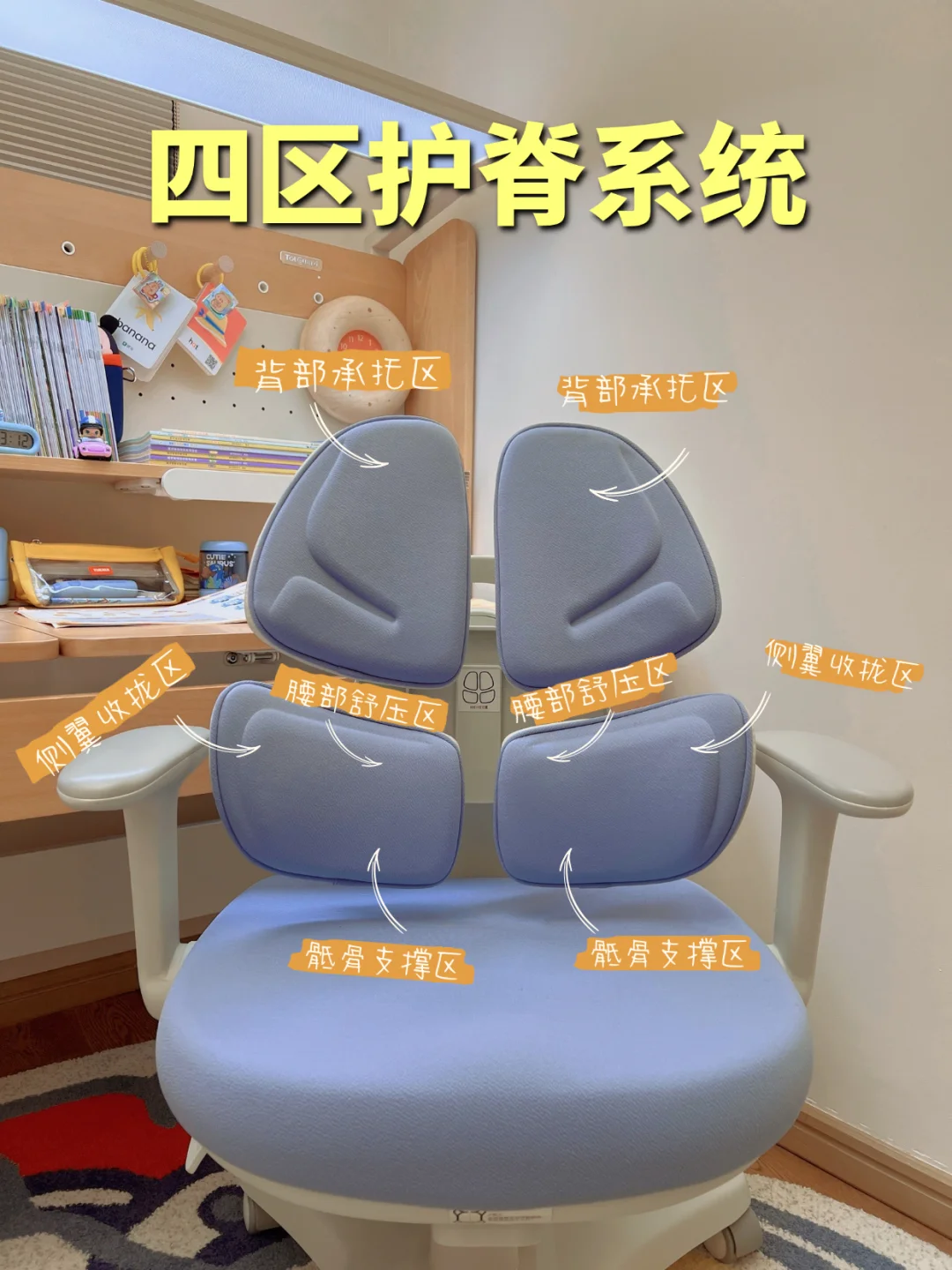 ▫️ 独创四区护脊系统,背部、腰部、侧翼、骶骨四区护脊,8点支撑,稳稳托住脊椎,娃再也不东倒西歪。