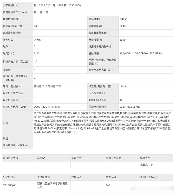 动力上,大唐采用纯电形式,电机峰值功率为300kW。