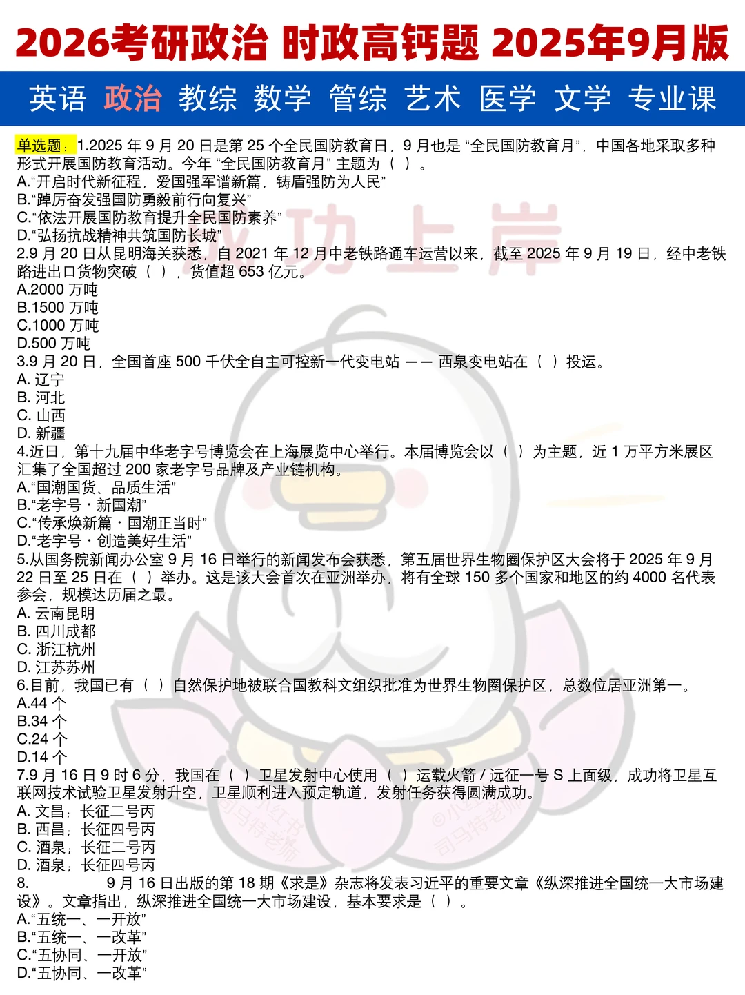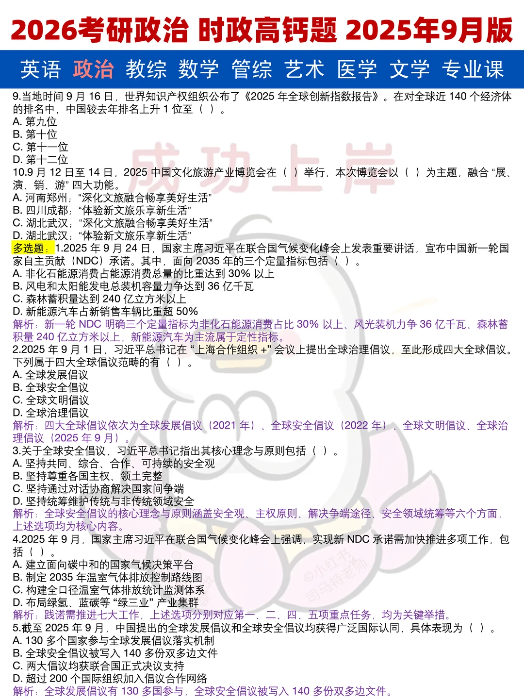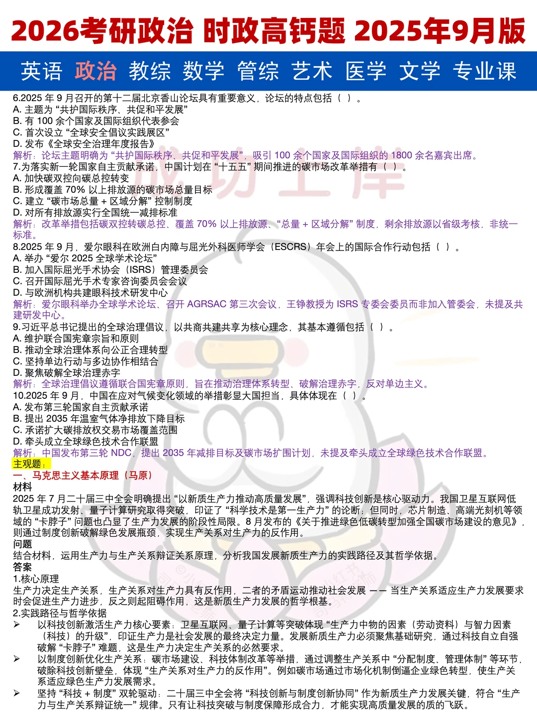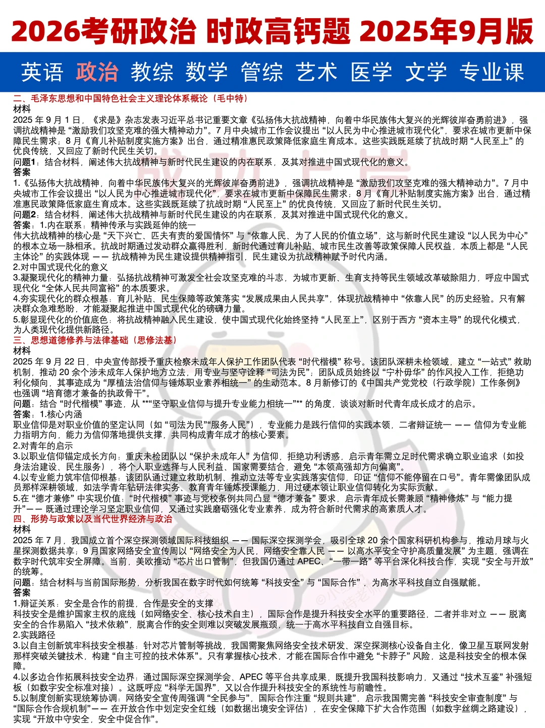 划重点!每年9、10、11这三个月的时政才是考察核心区,占比虽然表面看不算顶高,但藏得特别深——马原的材料题、史纲的分析题,好多题干底子都是近期时政要闻改编的,你以为在考理论,其实在考你有没有关注时事!