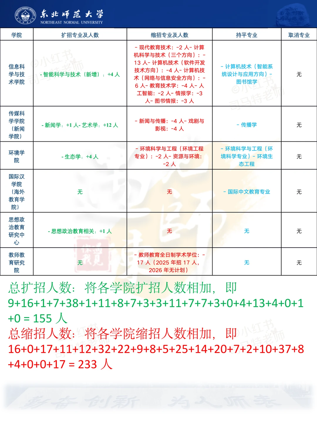 最后想跟大家说,招生变动是挑战也是机遇,缩招专业未必不能冲,扩招专业也别盲目跟风,关键还是看自己的复习进度和实力。既然目标是东师,就别被数据吓到,把剩下的时间用好,猛猛冲就对了!