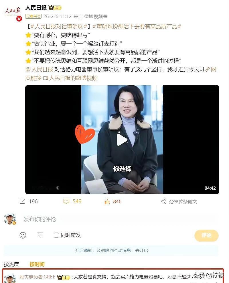 今天人民日报发表了对话董明珠的文章,微博上点赞支持的人很多。大家都被董明珠那股子执着劲儿给打动了,都觉得她讲得在理,说的话实实在在,全是干货。 董明珠在文章里说“做制造业,要一个一个螺丝钉去打造”,这话听起来简单,可里面的学问可大了去了。现在这社会,大家都想赚快钱,好多企业就想着走捷径,偷工减料啥的。但董明珠不这样,她就认定了制造业得踏实实的,不能耍滑头。你想啊,要是大家都不重视产品质量,那市场上还能有好东西吗?格力能从一个小厂变成现在的大集团,估计就靠这股子对品质的坚持。就像她说的,市场竞争本质上是价值观的竞争,你价值观正了,产品好了,消费者自然就买账。 她还提到36年就待在一家企业,这在现在可太少见了。现在年轻人换工作跟换衣服似的,动不动就跳槽。但董明珠就觉得,选择了就要做好。她从业务员干起,一路做到董事长,靠的可不是运气。她把销售额做到全公司第一,当部长就想着怎么带团队,一步一个脚印。她说让一个队伍长期保持一致的价值观是最大挑战,这确实啊,人多了想法就多,可她就有办法,推动渠道改革,把“先货后款”改成“先款后货”,这得多有魄力啊,一般人可不敢这么干,结果呢,格力在经销商那的信任就建立起来了,这不就是实力嘛。 说到产品质量,前几年空调行业铜价高,好多企业就想用铝代替铜,可董明珠坚决不干。她觉得不能拿消费者的安全开玩笑,宁愿少赚点钱。这就是良心企业啊,现在有些企业,为了钱啥都不顾了,可董明珠把消费者放在心上呢。而且格力为了应对成本压力,还搞技术创新,这就对了嘛,遇到问题不是想着偷工减料,而是靠技术去解决,这才是企业该有的样子。 还有那个给一线安装工发高温补贴的事,也挺让人感动的。行业利润都被挤压了,她还想着给工人发补贴,好多亿的支出呢,一般老板肯定舍不得。但董明珠觉得安装工是品牌的“脸面”,得尊重劳动者,这就体现出她的人文关怀了。格力的“十年包修”政策也是,没有对产品质量的绝对自信,谁敢这么承诺啊,一台空调近千项质量检测,这标准够高的,故障率远低于行业平均水平,这就是格力的底气。 不过呢,也有人可能会觉得董明珠太“强势”了,她坚持的这些理念在一些人眼里可能太死板。比如说,现在市场变化这么快,她一直强调制造业要慢慢来,会不会跟不上节奏啊?还有她亲自为格力代言,虽然说是对产品有信心,但也有人觉得这是在给自己打广告,有点过度营销了。而且她对年轻人说要有耐心、要吃得起亏,现在的年轻人压力这么大,房贷车贷啥的,有时候可能真的没办法慢慢等机会,得赶紧赚钱养家,她的这些话对部分年轻人来说,可能有点“站着说话不腰疼”的感觉。 但不管怎么说,董明珠在制造业坚守这么多年,她的经验和理念肯定是有价值的。在这个浮躁的商业环境里,她就像一股清流,让大家看到,企业是可以靠诚信、靠品质、靠对员工的关怀发展壮大的。人民日报这次对话她,也是想让更多人看到这种坚守实业的精神吧。 各位读者你们怎么看?欢迎在评论区讨论。
