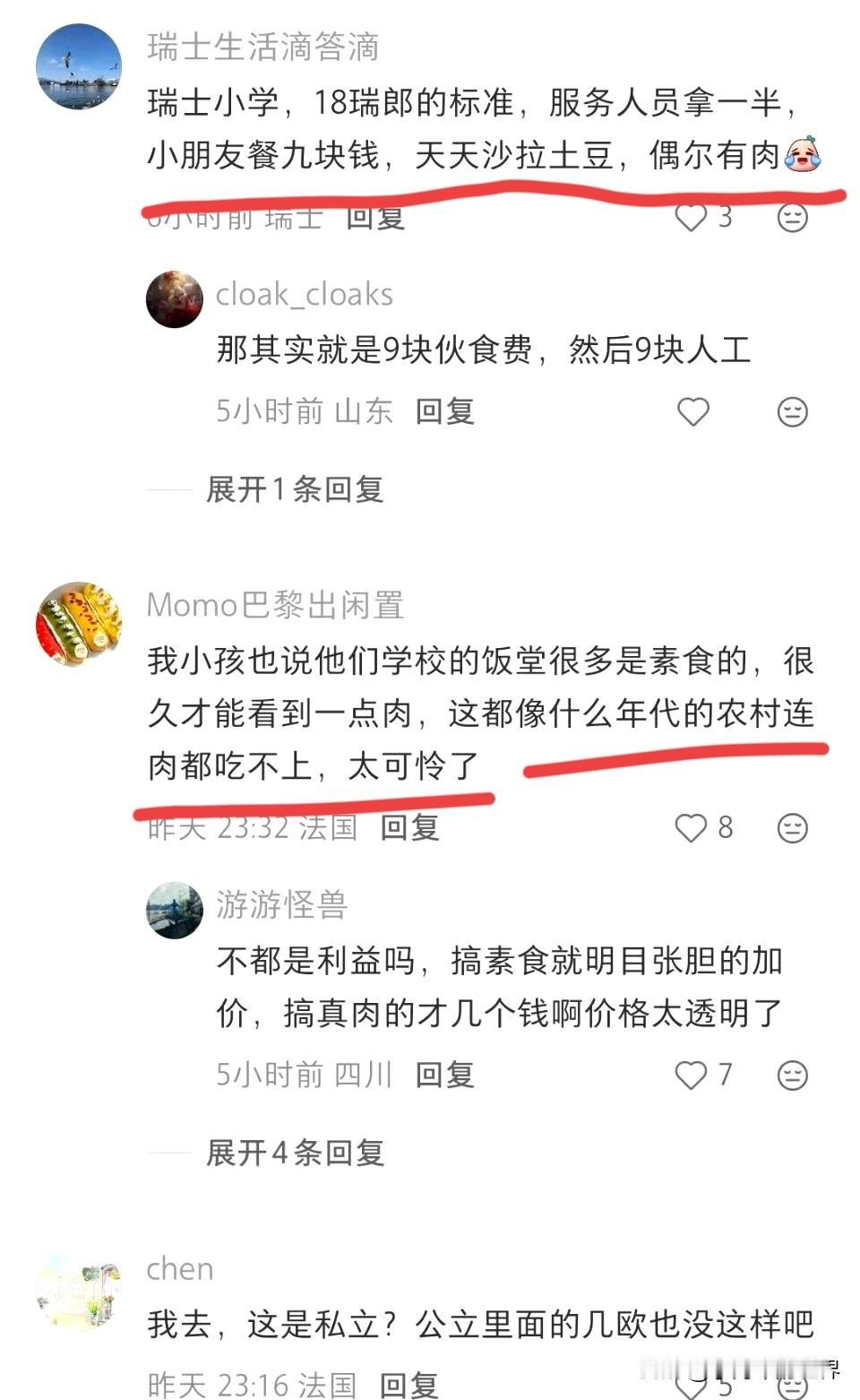 怪不得西方总拿我们孩子吃肉说事,说我们不环保不健康,瞧瞧人家吃的“多环保,多健康”[奸笑],贵不说,还是素食! 法国小学7欧(约80人币)的午餐,几块苹果,几片洋葱,半个素食汉堡,这不是寒酸。这是磕碜! 关键是这事还不是个别现象,看评论区,类似法国小学这种素食午餐趋势,正在向欧洲各国学校蔓延。 官方的解释是,这是有机食品,所以贵。 孩子正是长身体的时候,肉食是必不可少的,反而是素食不应多。 再者,就算给孩子吃素食,但你最起码一点也得让她吃饱。 就图中盘子里那点东西,贵不贵先不说,那能吃饱吗? 有机营养的前提,首先要吃饱。 吃饱都达不到,再有机,再营养的食物又有何用? 就那点少的可怜的食物,你还不如给孩子上两个大面包实用! 正如网友说的,人演化到这个地步不是为了吃素。