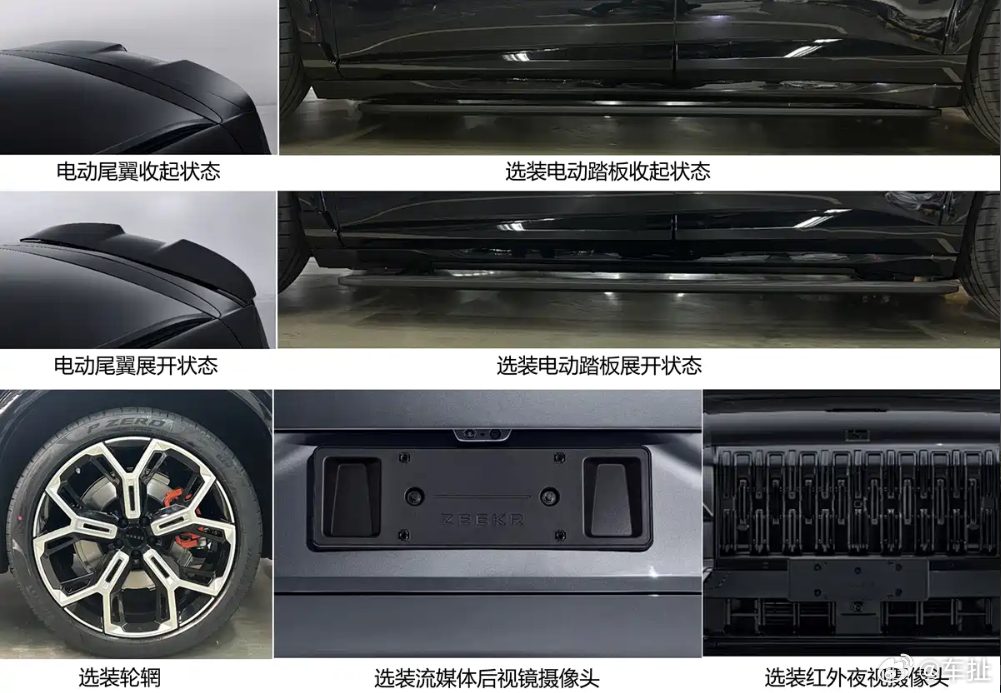 极氪8X运动版申报图,全黑化搭配红色卡钳,看上去就是个不好惹的家伙。除了更运动的套件,预计也会有更性能取向的轮胎和更强性能的制动系统。另外三电机综合1030千瓦的功率应该会让所有大排量性能猛兽望尘莫及。当然6C超快充电池,48V主动防倾杆应该也都不会缺席。
