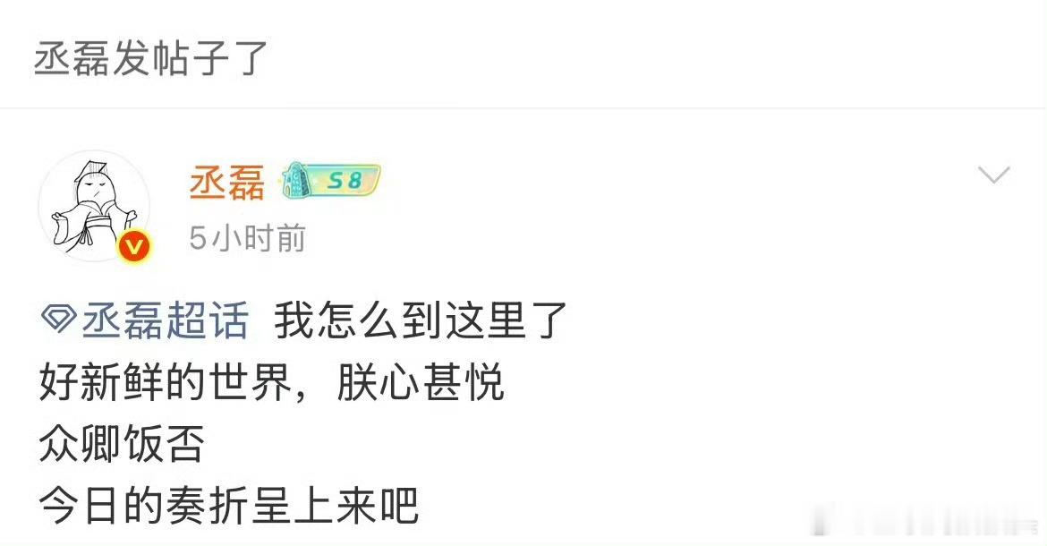 丞磊 你有没有为了剧宣拼过命谁懂啊!丞磊为了宣传新剧真的拼到发光!营业指数直接拉满,换头像、发博、互动、拉好友一条龙服务,评论区回得比谁都勤快。这哪里是剧宣,这是把命都用上了吧,剧宣卷王非他莫属!