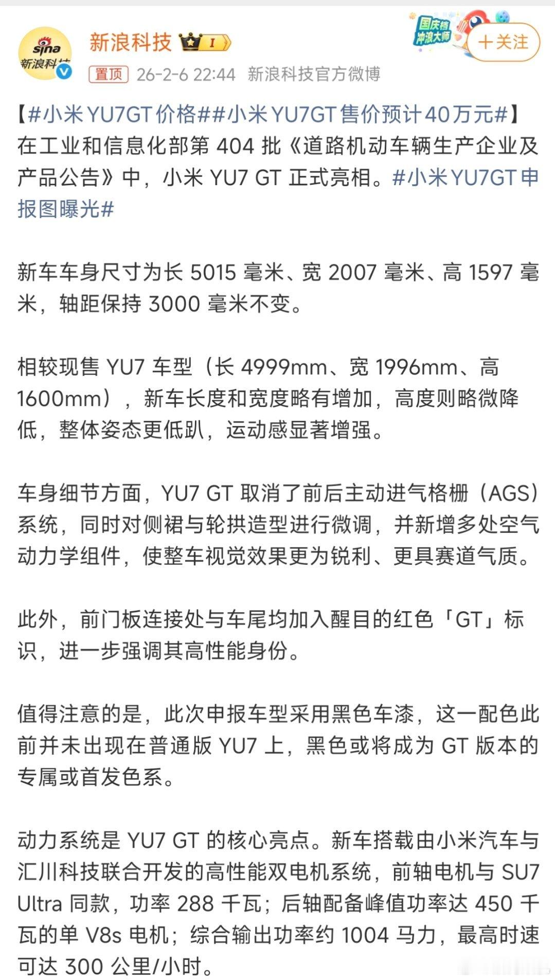 小米yu7GT,传奇耐黑!小米YU7GT申报图曝光