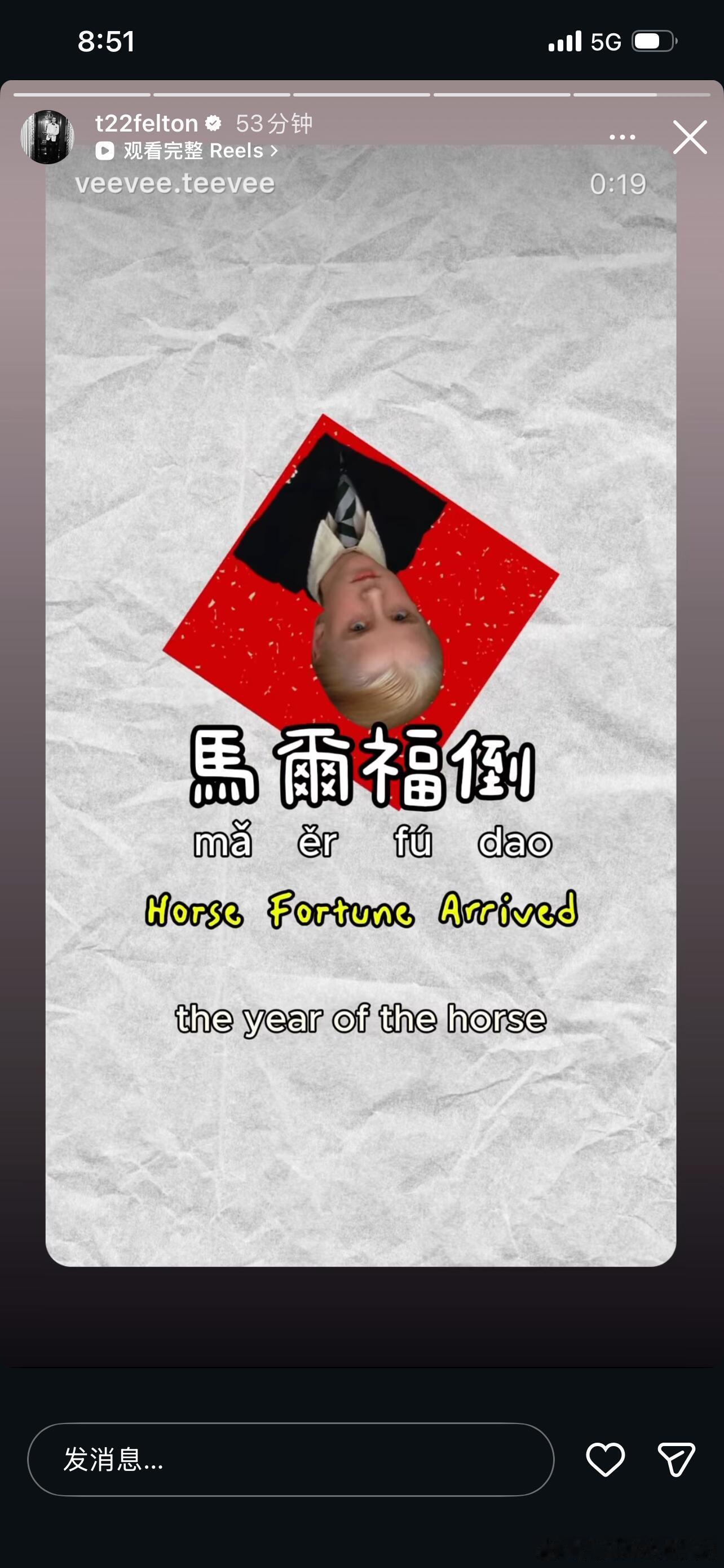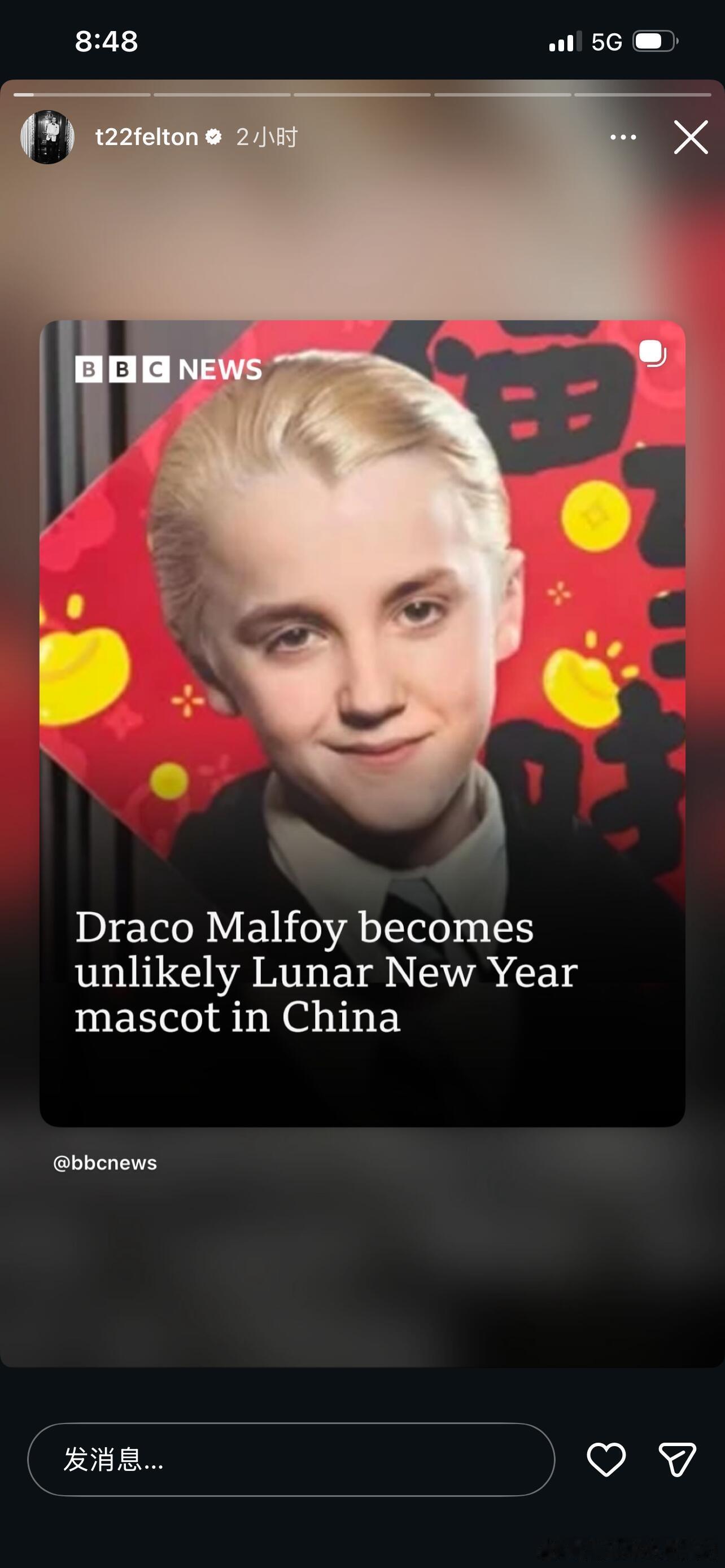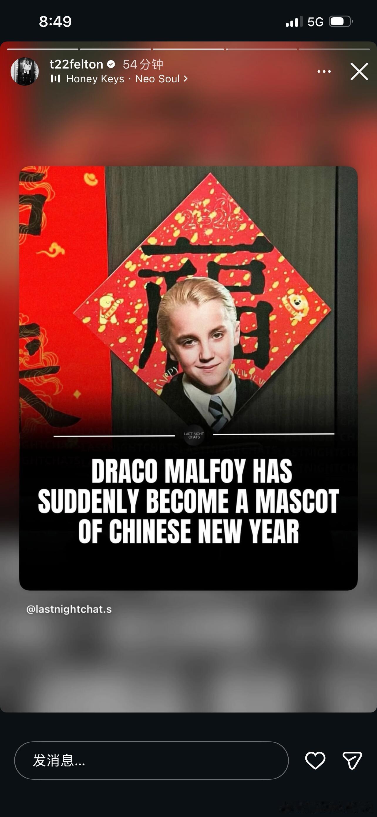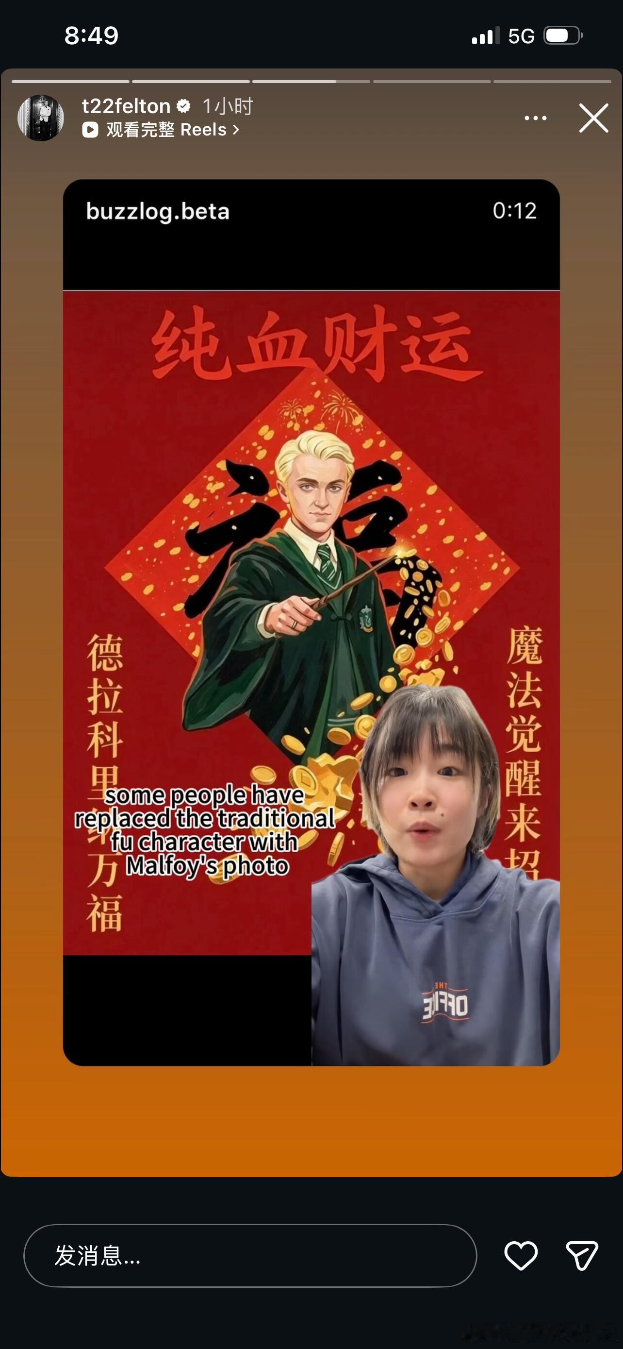在《哈利波特》里饰演马尔福的演员Felton发了不知道多少条动态以表示震撼今年春晚都应该请他