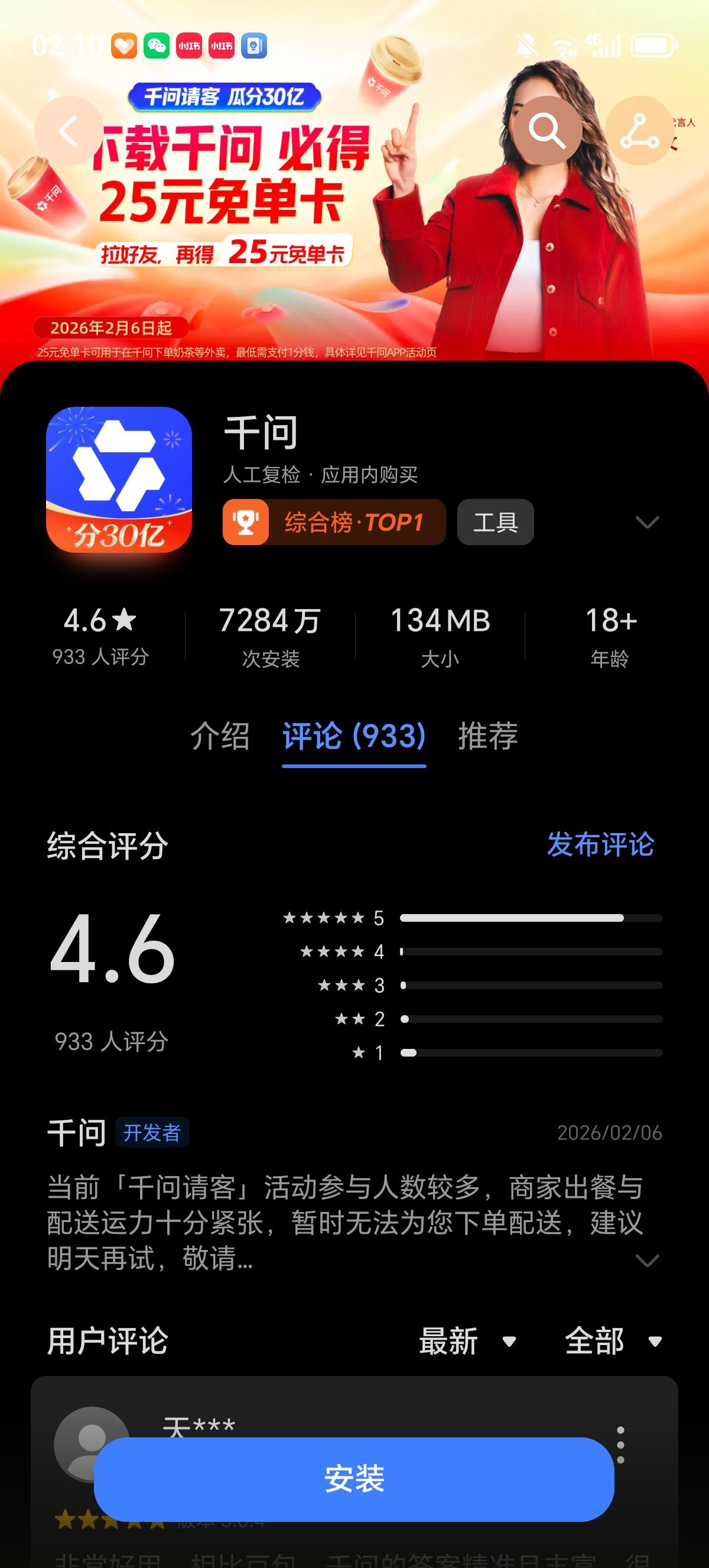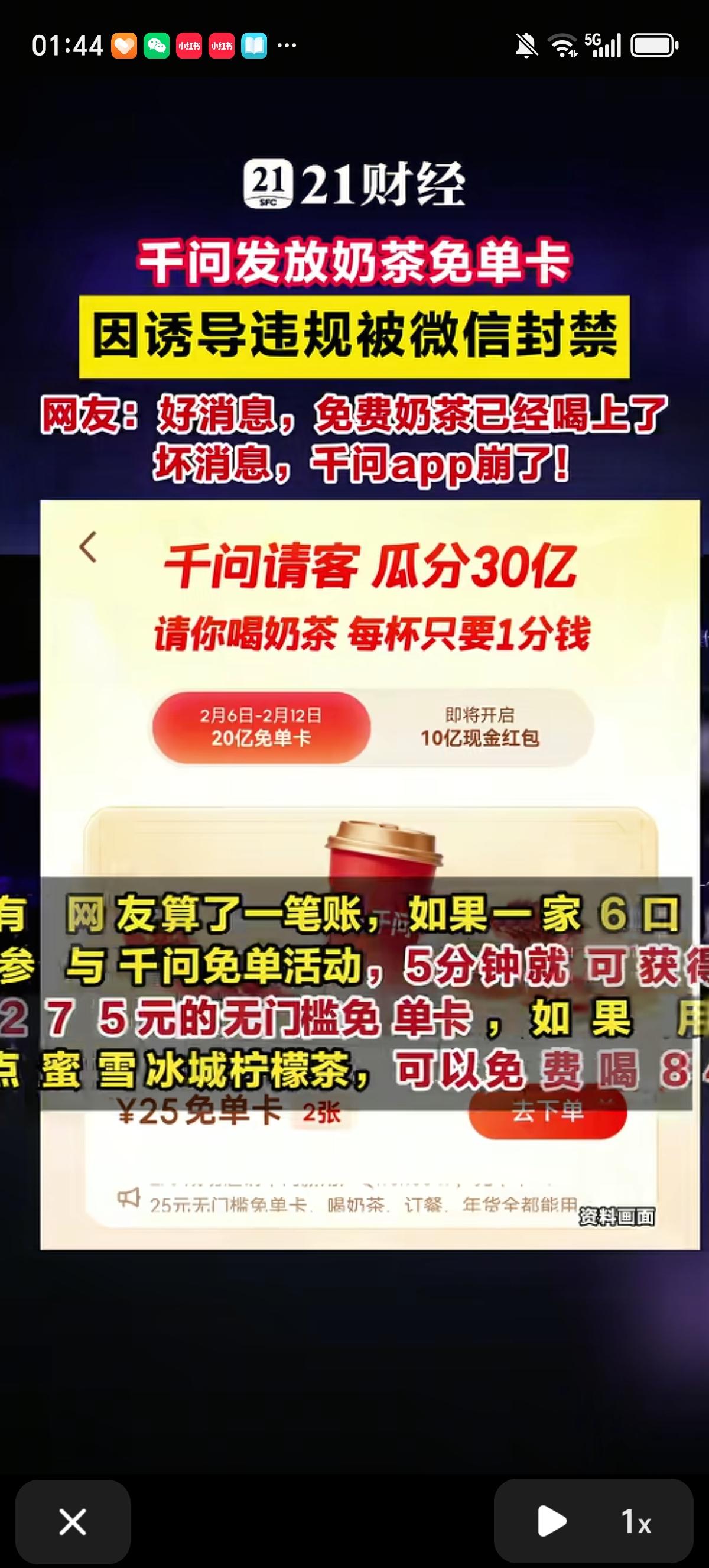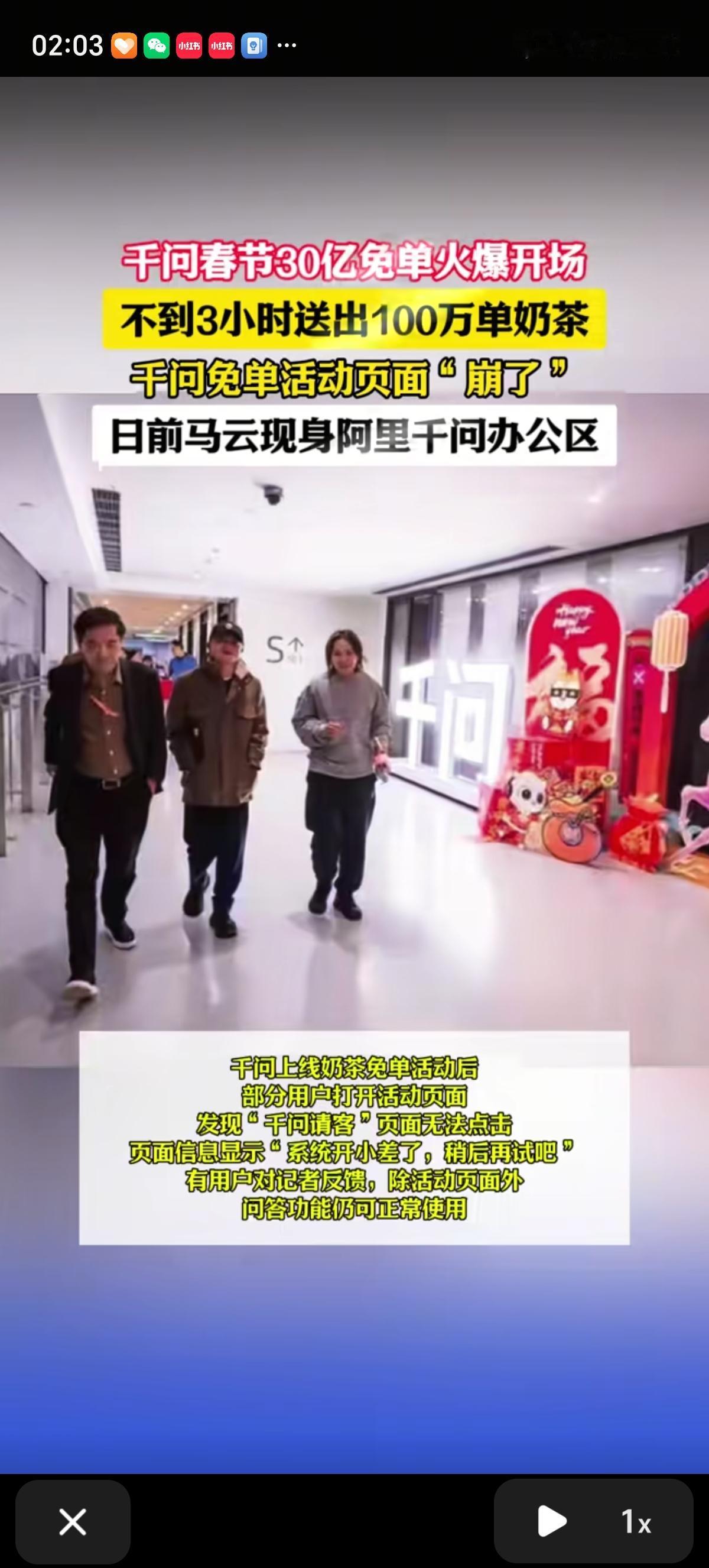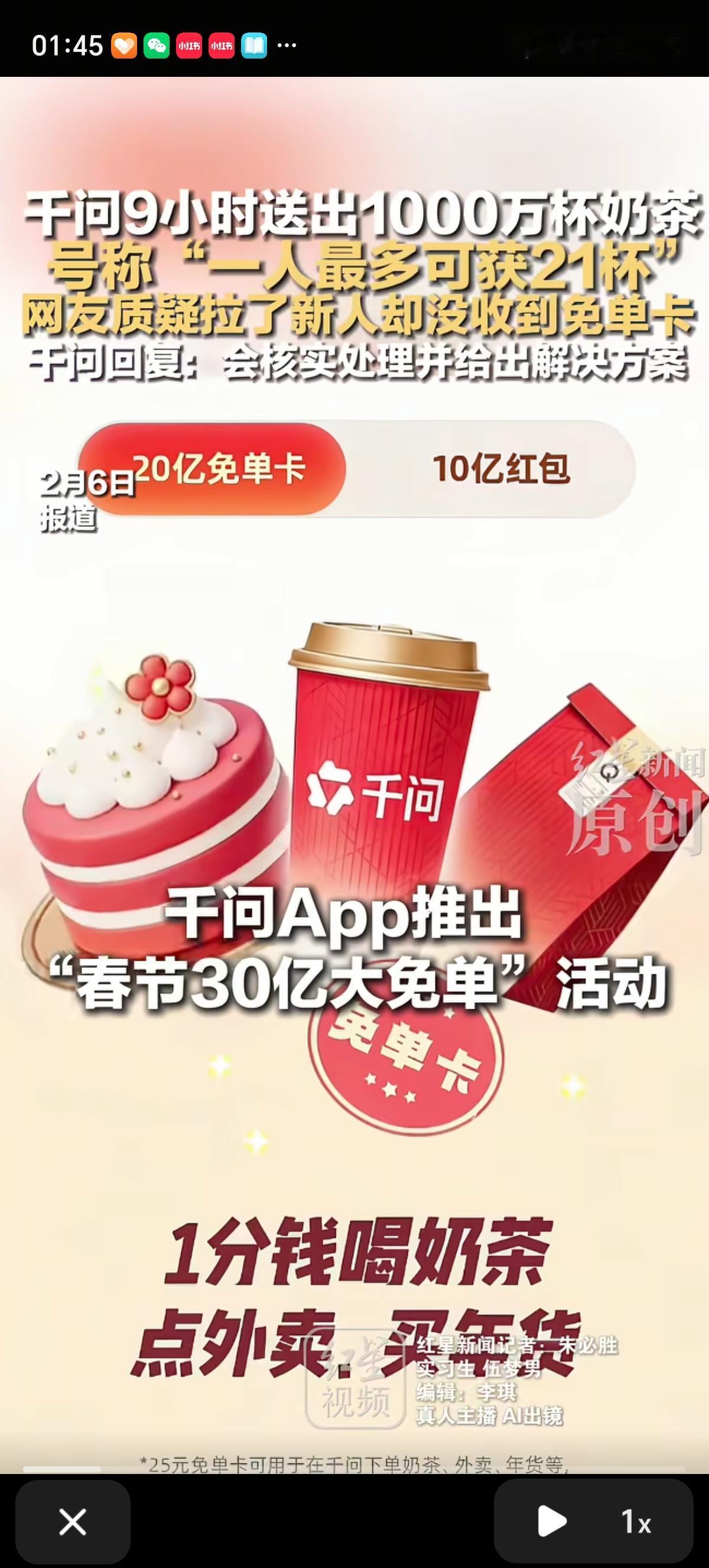 你薅到阿里千问的羊毛了吗?这场春节大战的黑马出现了,9小时送出1000万杯奶茶,预算30亿,一个人最多领21杯,奶茶可以喝到2月23号。 有网友算了一笔账,如果一家6口人都参加千问免单活动,5分钟就可以获得275元的无门槛免单卡,如果全用来喝蜜雪冰城,可以免费喝84杯柠檬茶。 用户可领25元免单卡,能1分钱喝奶茶、点外卖、买年货。每邀请1位新用户,双方各得1张免单卡,单人最多可获得21张。 这场AI大战里千问的投入是最多的吧,马云都现身阿里千问办公区了。现在下载量7千多万了,奶茶才喝第一天,离下载量破亿不远了。