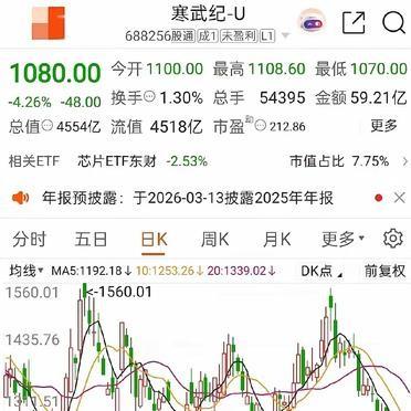 寒武纪的股价又跌了4%。 昨天刚跌完,今天接着跌。新上市的摩尔线程和沐曦股份,股