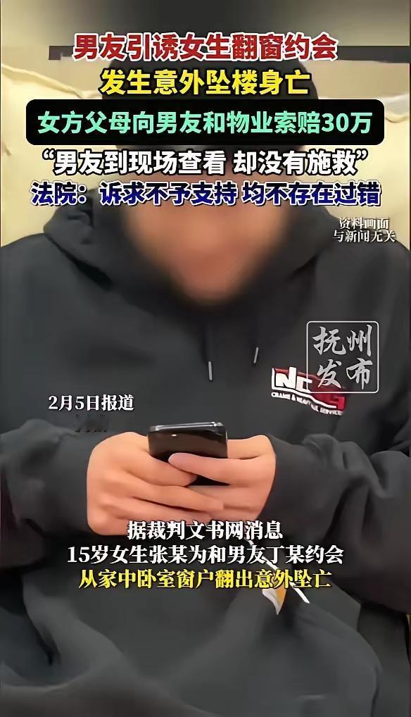 这起事件引发了广泛的关注和反思。以下是我的分析和思考: 一、事件梗概 15岁的女孩,为了与男友约会,选择从家中卧室窗户翻出,试图爬到外面的消防走廊。意外发生时,她不幸坠楼身亡。事后,女孩父母将男友和物业告上法庭,要求赔偿。法院审理后,判决驳回了所有诉请,认为无过错责任属于公平正义的体现。 二、法律角度 法院依据法律原则,认定: 物业公司责任有限,房屋设计合规,安全措施到位,女孩的行为超出物业责任范围。 男友丁某虽有道德瑕疵,但未有证据证明其诱导或逼迫女孩翻窗,也没有证据表明其故意不施救。 事故的因果关系主要归于女孩自己冒险行为。 这体现了法律对于未成年人行为责任、场所安全责任以及因果关系的严格界定。 三、家庭与社会责任 事件反映出: 家长应加强对青少年的生命安全教育,让他们明白冒险的风险。 学校和社会也应有相关教育措施,帮助青少年正确处理情感与冲动。 四、青少年的冲动与风险 青少年的冲动和叛逆是正常的成长过程,但也需要引导与监管。此事件提醒家长和社会: 理解青少年的情感需求,同时引导他们理性面对情感冲突。 提高安全意识,避免因冲动带来无法挽回的后果。 五、对法律与伦理的反思 虽然法律明确划定责任,但从伦理角度,事件令人痛心。我们需要: 关注青少年的心理健康和情感需求。 增强家庭沟通,建立良好的沟通渠道,减少青少年的孤独感和冲动行为。 六、总结 生命宝贵,任何冒险都不值得。维护青少年的安全、家庭的关爱与社会的责任缺一不可。法律是底线,但预防和沟通才是更有效的保护措施。 欢迎大家在评论区发表看法,共同反思与学习!坠楼故事 学校坠亡事件