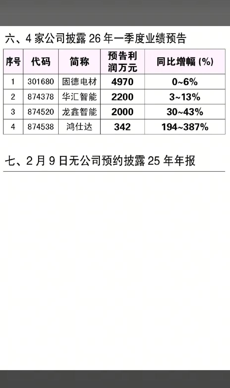 2月7日,周六A股这些股票值得重点关注!!! 下周一,6家公司将实施分红,相关股票值得重点关注;13家公司披露25年年报快报;1家公司披露25年年报预告;4家公司披露26年一季度业绩预告;相关概念股值得重点关注!!!