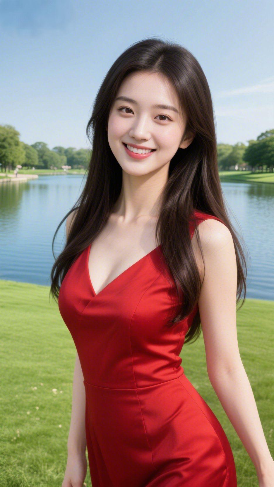 红裙伴湖的明柔 晴光铺满草地时,她立在湖畔风里——红裙似浸了霞的软,面料衬着松弛的气息,长发随风轻晃,笑意漫开时,将轻快揉进了湖光里。 并无刻意妆点,是衣色自带的鲜活,是湖景衬出的明丽,是眉眼间漫开的自在。像撞进一帧恰好的户外画面,不必寻喧闹,只这红与碧草、人与湖光的相衬,便觉轻缓的欢喜漫上来。 原来日常的悦目,从不是刻意雕琢,是藏在舒展里的自然模样。 红裙户外穿搭 湖景氛围感