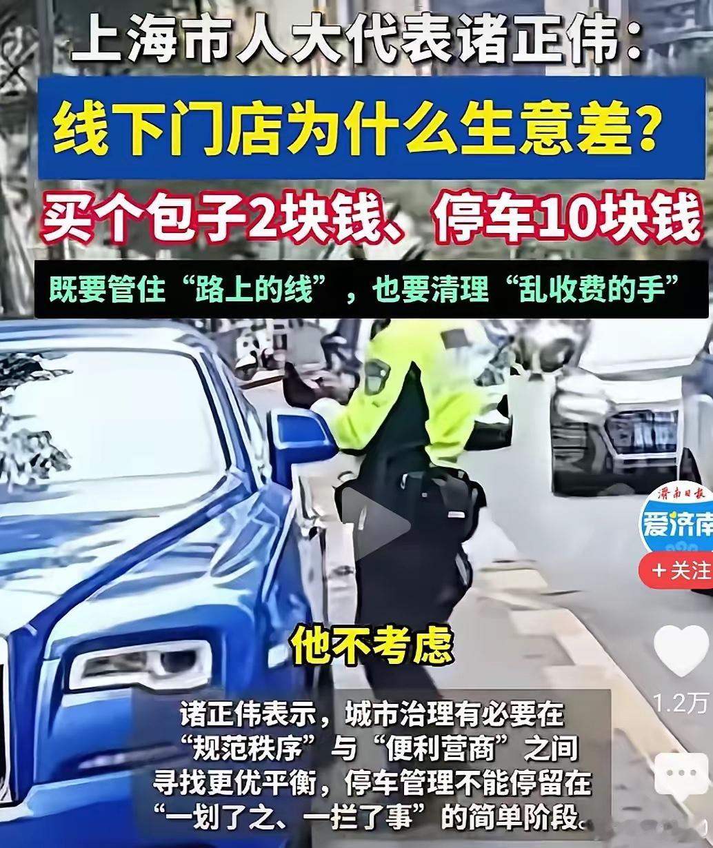 路是人民的路,为什么要缴费!说的太对了!所谓的精细化城市管理把城市烟火气都弄没了!现在路边小店都没办法生存!终于有人清醒了!为什么现在没人逛街就因为这些。这就是上海人大代表发出的声音。他讲的不光是上海的实情,在国内这种情况无处不在。现在的停车费,交通违规费真是太多了。城镇化给老百姓带来的不利与不便多之又多。出门散步就要花钱,普通老百姓负担不起!