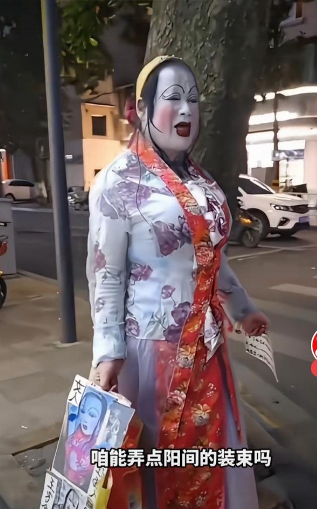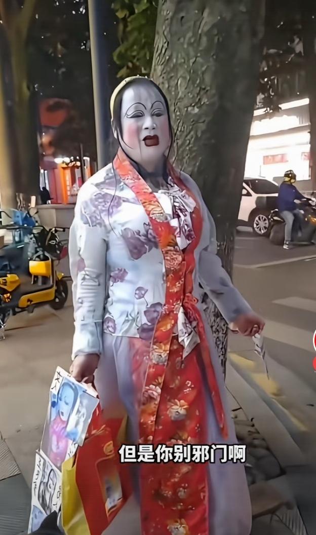 冷不丁的在街上遇见,真的会吓死人! 整什么不好,非要整这出。 哎,有些人都一大把年纪了,还要装神扮鬼。 只能说,他们是吃得太饱了。
