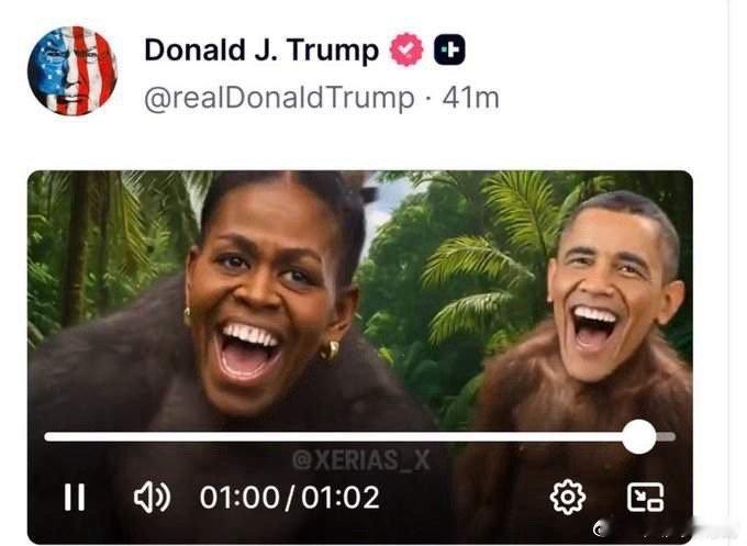评几句:这件事的核心很清晰:特朗普发布丑化奥巴马夫妇的种族歧视视频,→白宫先护短→甩锅工作人员→被迫删帖→民主党猛烈抨击,是美国两党对立、种族议题撕裂、特朗普个人风格与白宫治理失序的集中爆发。整件事也再次证明,美国两党恶斗与种族矛盾早已无底线可言,总统账号沦为煽动仇恨的工具,所谓政治文明与平等包容,在现实博弈中早已被抛之脑后。