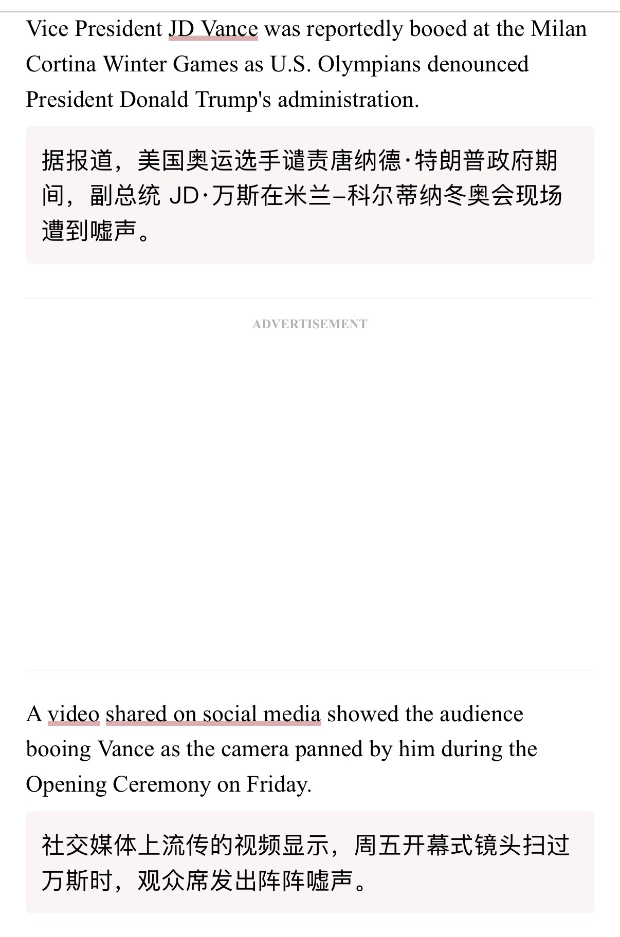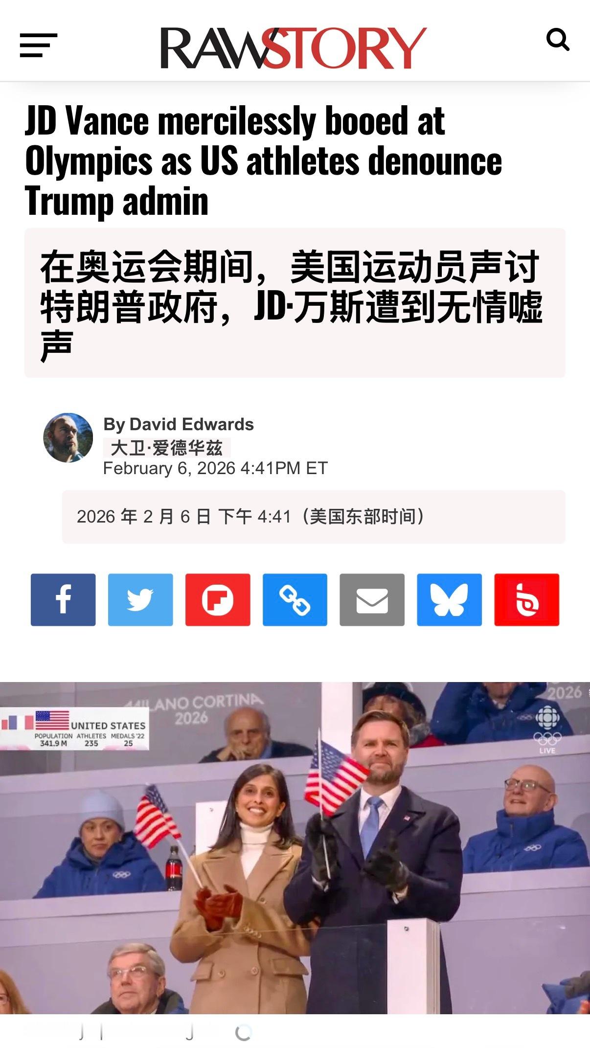 🔻JD万斯开幕式被嘘的报道被很快发出。🔻美国运动员里喷特朗普政府的也不少。冬