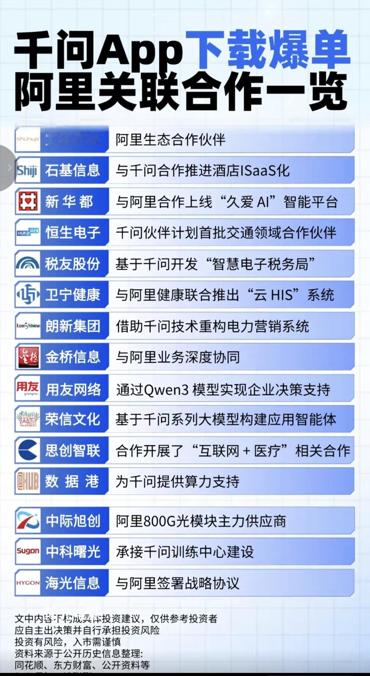 阿里千问app下载量爆单! 相关核心龙头关联股整理: