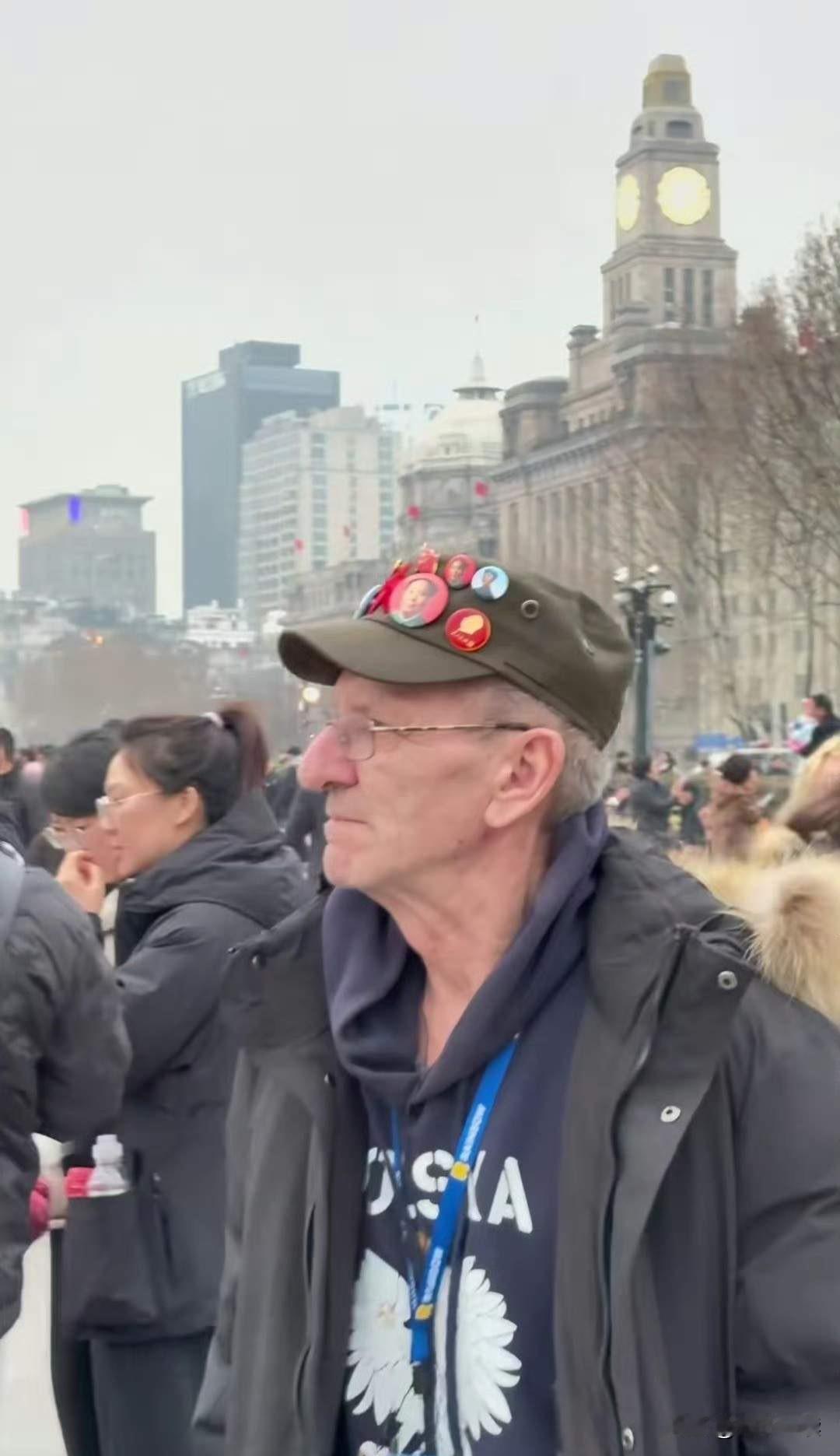 上海外滩,一位外国老人的头上别着毛主席像章,醒目又真诚,一眼就能看出是打心底里的喜爱。 有人总说西方不懂中国,可这枚像章就是最好的答案:真正的中国魅力,从不是浮华的表象,而是伟人精神铸就的民族底色,是刻在骨子里的东方力量。这枚小小的像章,让世界读懂了中国精神的永恒吸引力!
