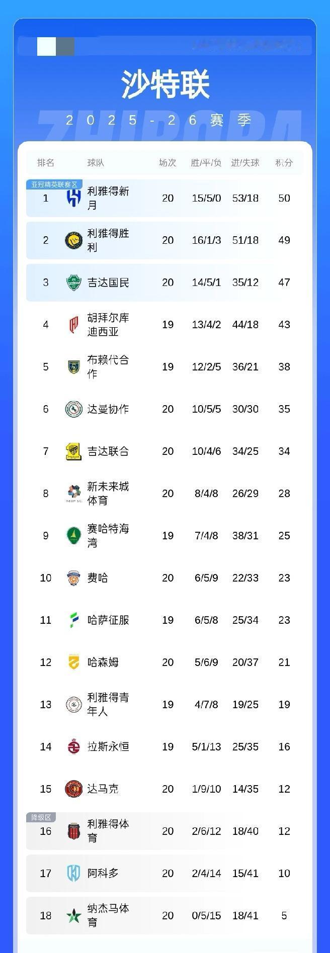 沙特联积分榜:胜利6连胜积49分排第2,新月吉50分排榜首,吉达国民积49分第3 02月07日 沙特联第21轮 利雅得胜利2-0战胜吉达联合,C罗连续两场缺战。 最新积分榜上:利雅得胜利六连胜,积49分排名第二,只落后新月1分,新月积50分排榜首,吉达国民积49分第3,吉达联合积34分第7
