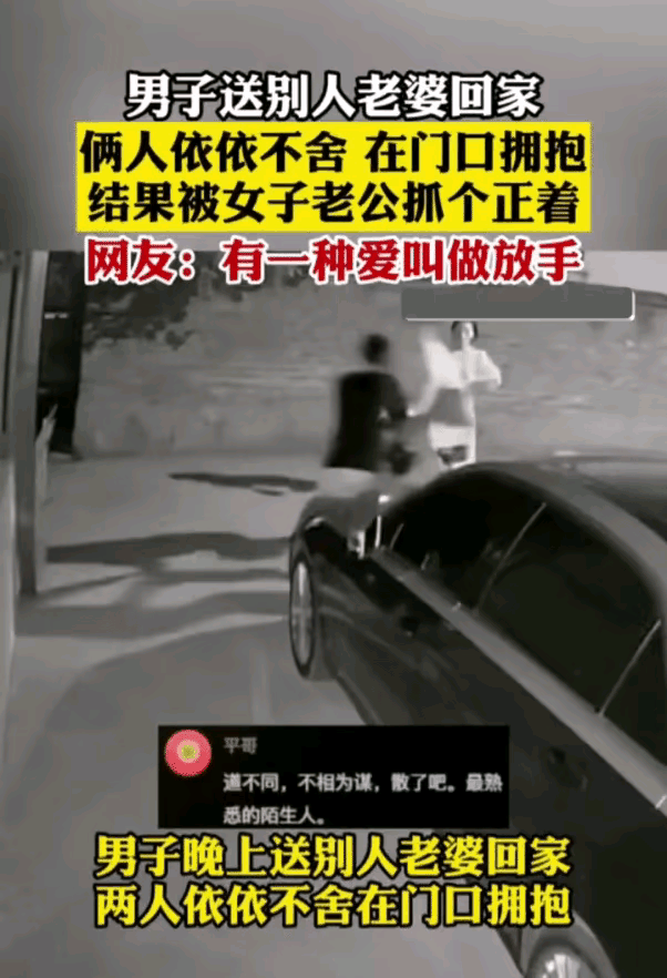 男子送别人老婆回家, 门口依依不舍拥抱,当场被女方老公抓个正着! 这画面简直社死又闹心,网友的话一针见血,没有边界的相处,终究是害人害己! 成年人的世界,最该懂的就是分寸感,尤其是和异性相处,对方有家庭就是最明确的红线。 所谓的暖心相送,到了家门口就该止步,过度的亲密和不舍,从来都不是单纯的情谊,而是对他人婚姻的不尊重,更是对自己的不负责任。 别拿朋友情谊当借口,真正的珍惜从不是越界的亲近,而是保持让彼此都安心的距离。 守住边界,是对他人家庭的敬畏,也是成年人最基本的担当,一时的暧昧,毁掉的可能是两个家庭的幸福。你觉得和异性相处,最该守住的边界是什么?