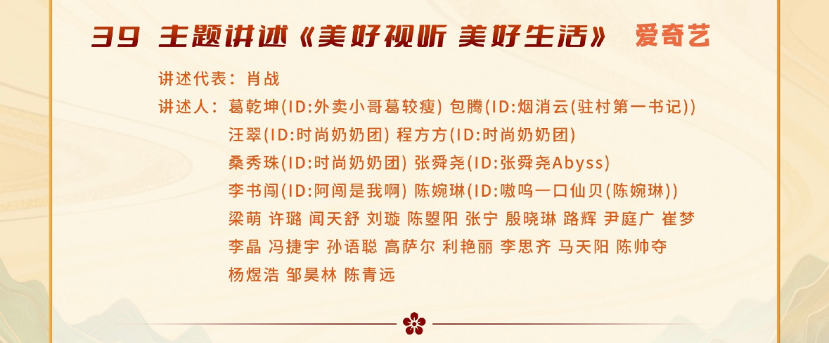 今晚节目陈述代表肖战《美好视听美好生活》主题讲述人也算压轴哦,给足声量和排面肖