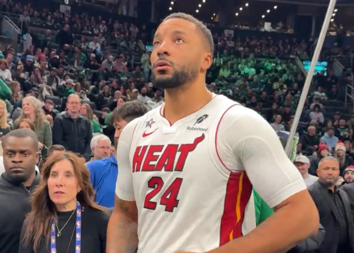 热火vs凯尔特人 一战,诺曼-鲍威尔身穿印有全明星徽章的球衣!