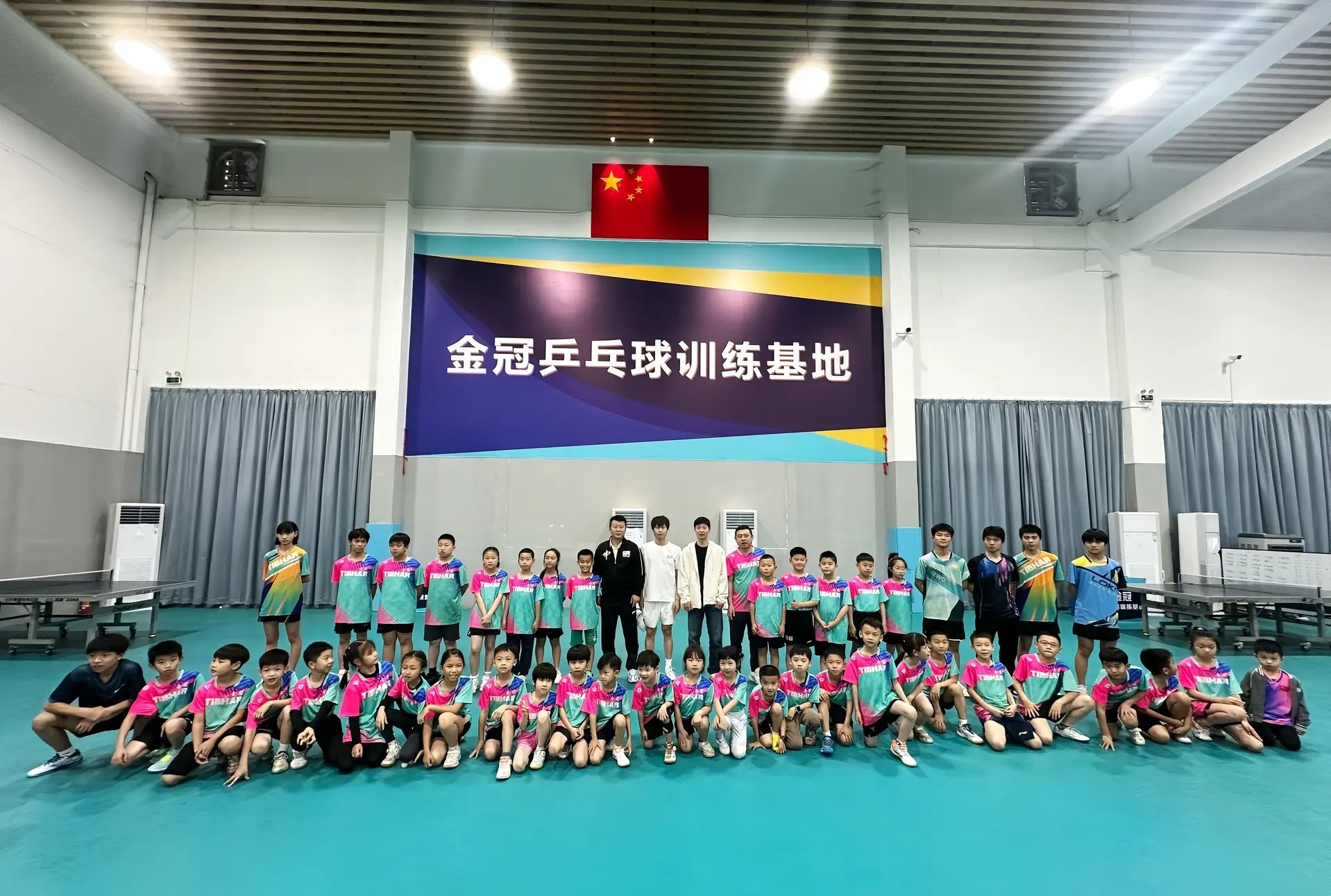 金冠又发了一张合照是小小朋友组的,所以是教练抱到中间准备让宝宝跟马龙一块,马龙让宝宝去边上了,宝宝就derderder在边上跪着了心软软